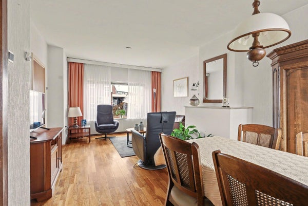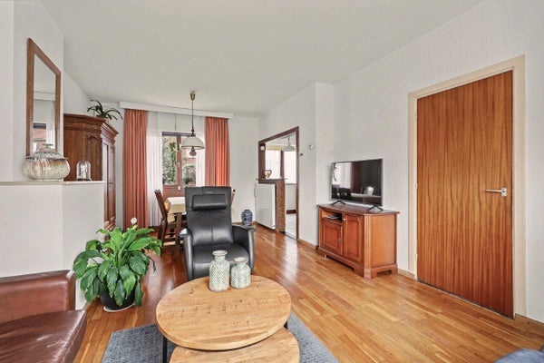 De keuken is praktisch ingericht en biedt directe toegang tot de achterzijde. Vanuit de woonkamer is er prettig daglicht en een goede leefruimte-indeling.