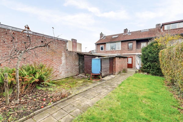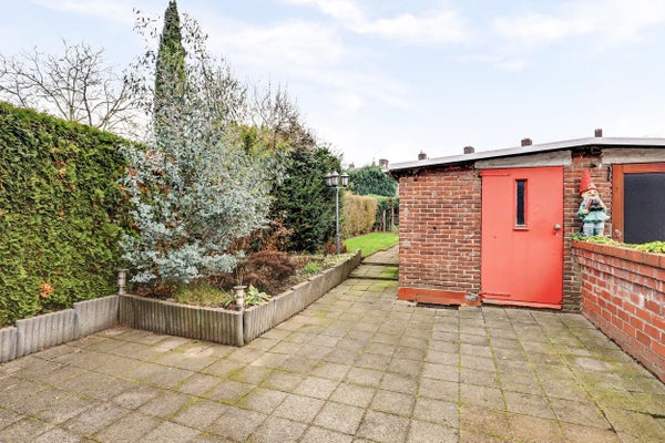 Aan de achterzijde beschikt de woning over een stenen schuur, ideaal voor fietsen en opslag.