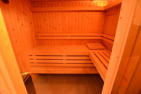 Saunaruimte 2,65 x 2,00 met opgietsauna.