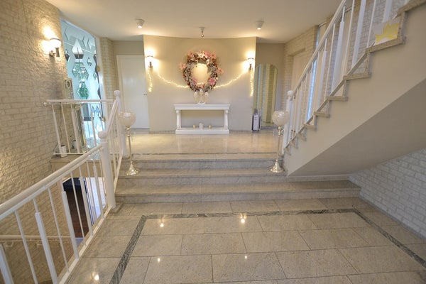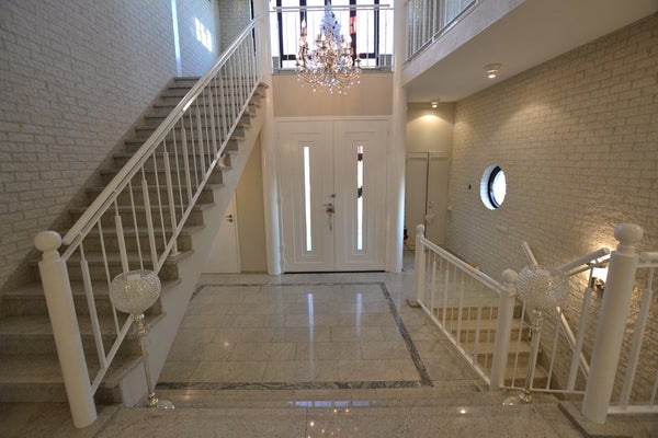 In de ontvangsthal 6,00 x 5,00 met bordes bevindt zich de nieuwe meterkast met slimme meters en het gastentoilet 1,55 x 1,05 met granieten vloer- en wandafwerking, nieuw hangtoilet en fonteintje.