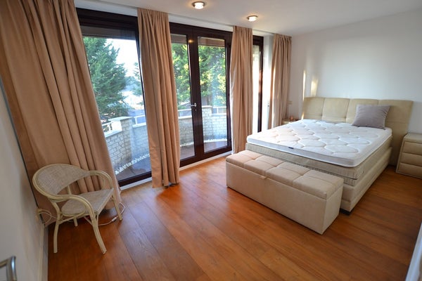 De slaapkamer aan de achterzijde van de woning heeft middels openslaande deuren toegang tot het balkon met uitzicht over de achtertuin en is voorzien van een elektrisch bedienbare zonwering.