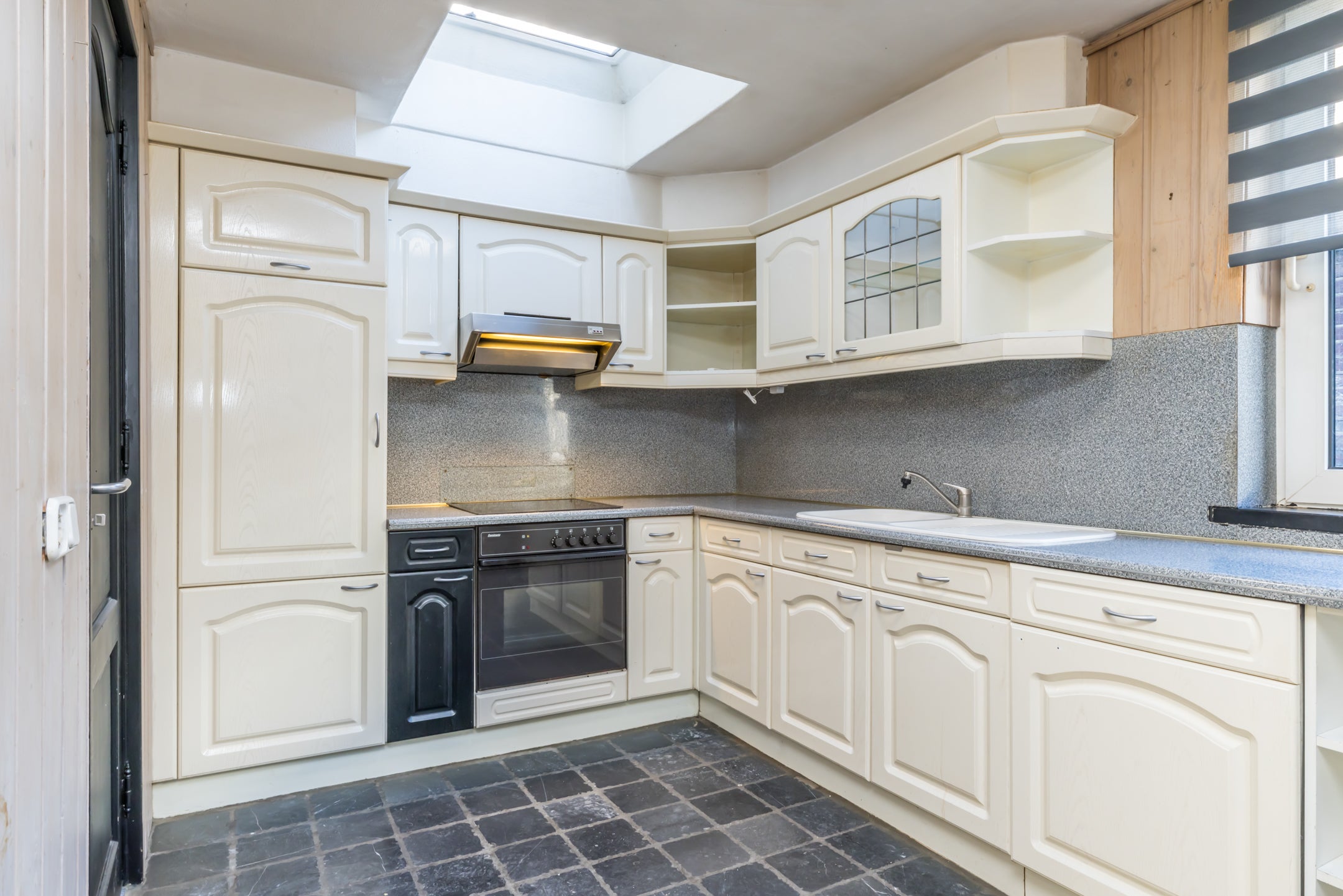 In de kelder, bereikbaar vanuit de keuken, bevindt zich een bergkelder. De entree gaat naar de 32 m² grote living met parketvloer, die een open verbinding biedt naar de eetkeuken, voorzien van een houten keukenblok en moderne apparatuur. De tuin is bereikbaar vanuit de keuken en er is een aparte garage.