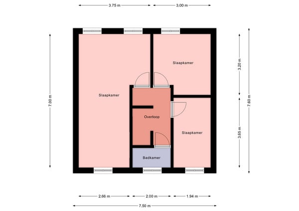 - De tussenwoning heeft een woonoppervlakte van 92 m² en beschikt over 7 kamers, waarvan 2 slaapkamers;