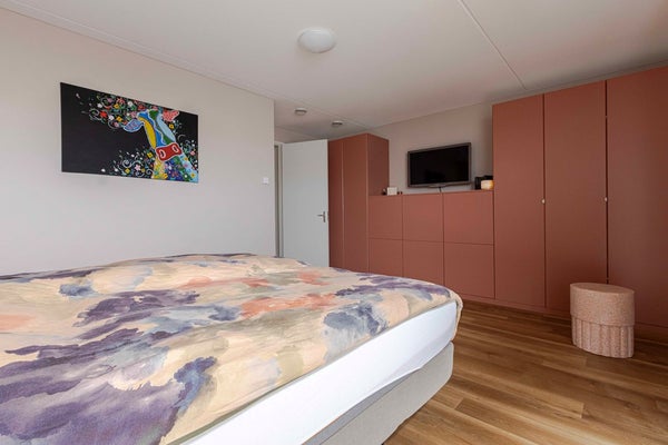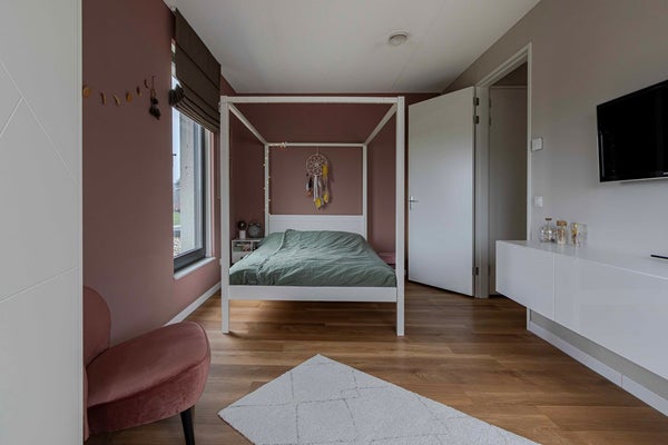 Over vrijwel de gehele verdieping loopt dezelfde PVC-vloer door, wat zorgt voor een rustige en uniforme uitstraling. De eerste slaapkamer, gelegen aan de voorzijde van de woning, heeft een royale oppervlakte van ca. 23 m². De tweede en derde slaapkamer bevinden zich aan de achterzijde en hebben een oppervlakte van respectievelijk ruim 10 m² en ruim 15 m². Vanuit deze kamers geniet je van een prettig uitzicht over de tuin. Alle slaapkamers zijn strak en modern afgewerkt en sluiten naadloos aan bij de hoogwaardige afwerking van de rest van de woning.