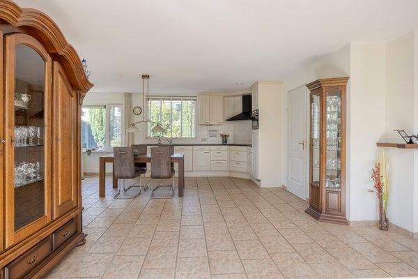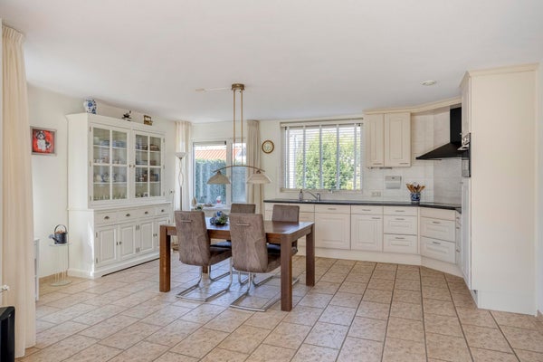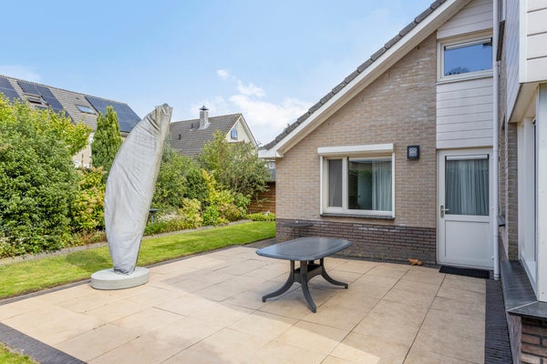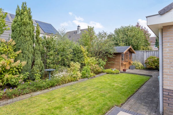 Deze ruime vrijstaande woning is gelegen aan de rand van de bebouwde kom op een perceel van 450 m². Met een woonoppervlakte van 202 m² biedt het huis op de begane grond een hal, toilet, en een 52 m² grote living met vloerverwarming en inbouwhaard. De open keuken is voorzien van moderne apparatuur en een zwart werkblad. Ook is er een slaapkamer van 16 m² en een badkamer met ligbad en douche. De bijkeuken leidt naar een verwarmde garage. Op de eerste verdieping zijn drie slaapkamers, een badkamer en een bergkamer. Een tweede trap biedt toegang tot een vrije ruimte voor extra kamers. De tuin is verzorgd aangelegd met een terras en een tuinhuis van 6 m². De woning is goed onderhouden met kunststof kozijnen en ligt aan een rustige straat in een kindvriendelijke omgeving.