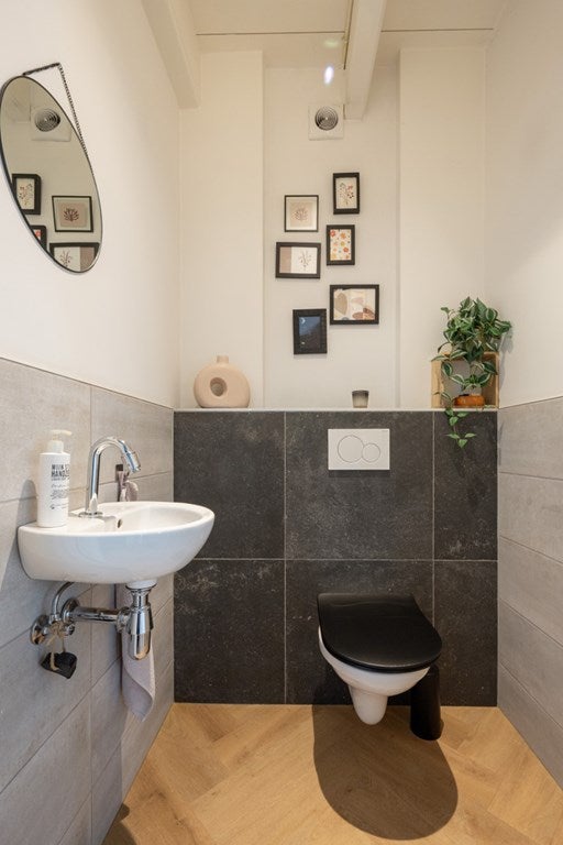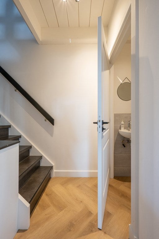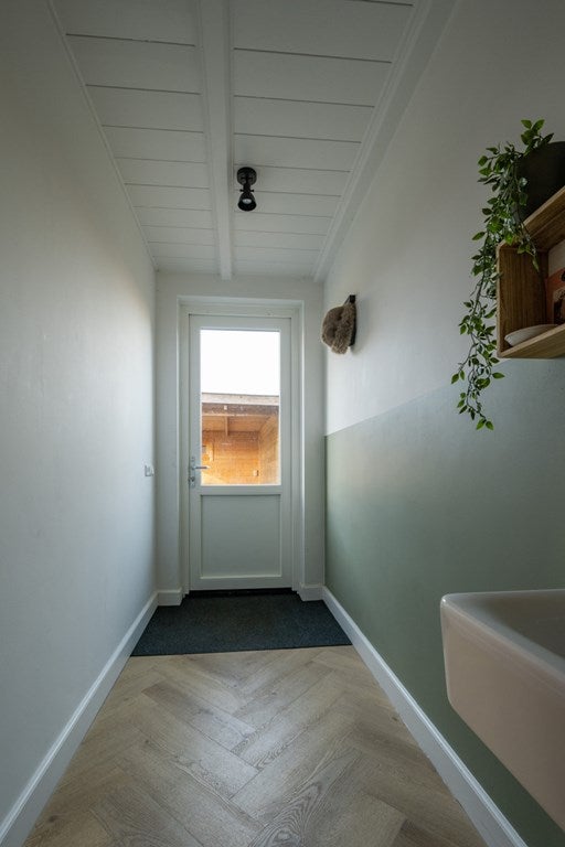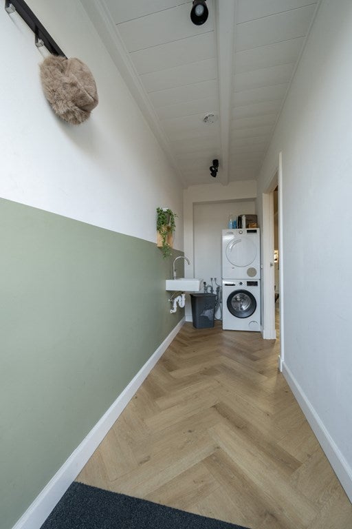Achterin liggen de praktische ruimtes: een bijkeuken (met o.a. plek voor witgoed) en een trapkast voor extra voorraad/berging. Daarnaast is er een separaat toilet.