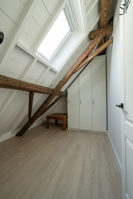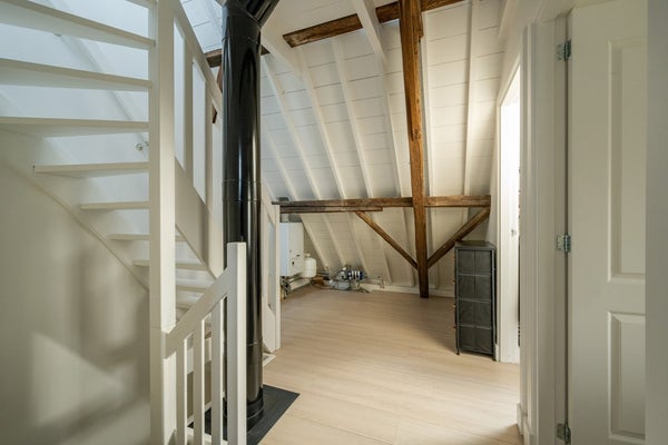 Dit is een mooie extra ruimte voor berging, hobby of een werkplek. De nokhoogte hier bedraagt circa 1,8 meter, en er is een dakraam voor daglicht.