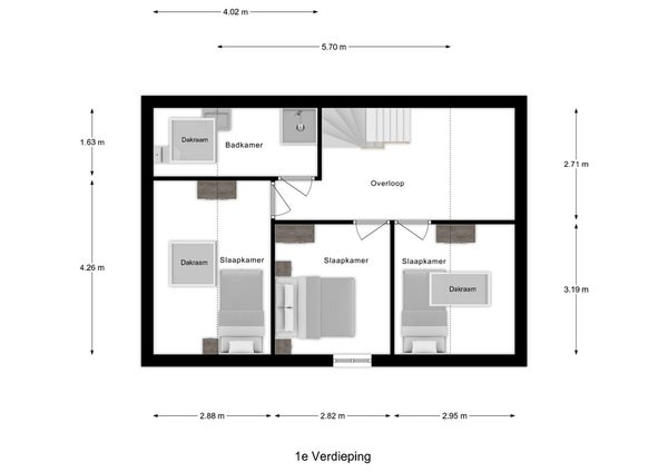 Op de verdieping kom je op de ruime overloop met toegang tot: