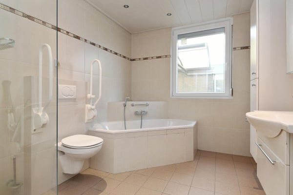 De badkamer is ruim van opzet en in 2006 nog gemoderniseerd. Uitgerust met alle gemakken zoals een ligbad, inloopdouche, wandcloset en een wastafelmeubel met bijpassende kast.