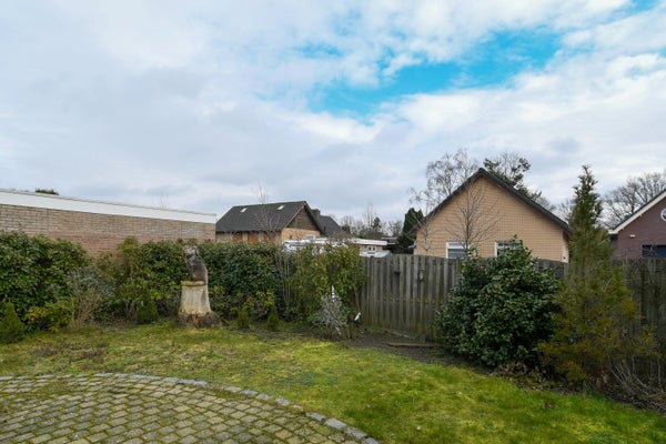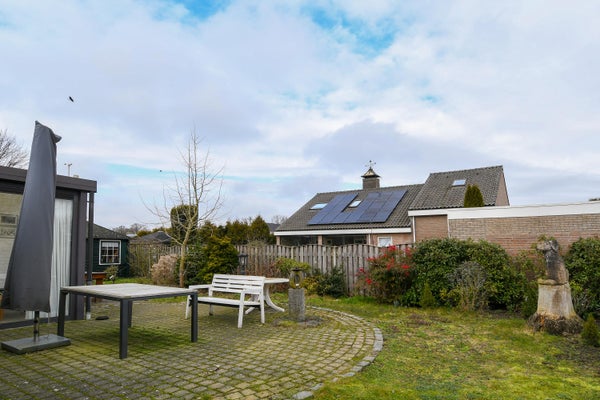 De achtertuin is circa 7 meter diep en 25 meter breed. De perfecte plek om te ontspannen in het zonnetje met een goed boek of om een barbecue te organiseren! Geniet hier van de rust en de ruimte. De tuinaanleg bestaat uit sierbestrating, gazon, diverse beplanting en een houten tuinhuis. De tuin is aan beide zijden van de woning toegankelijk middels een achterom en aan de voorzijde is nog een carport aanwezig.