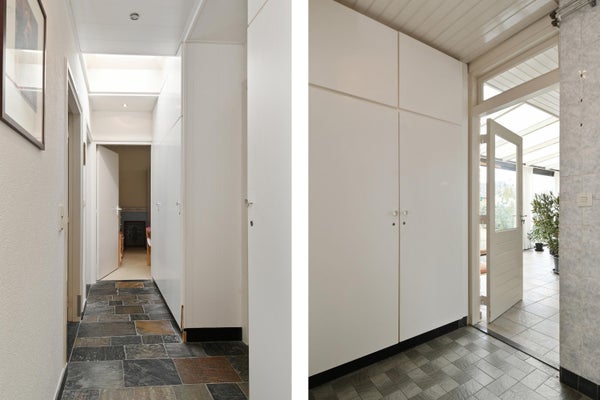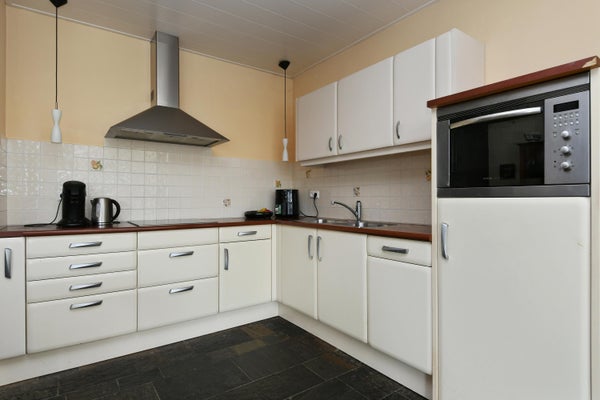 De keuken is aan de achterzijde gelegen en uitgevoerd in een lichte neutrale kleurstelling. De inrichting bestaat uit een 4-pits inductiekookplaat, een combimagnetron, afzuigkap, koelkast en vaatwasmachine! Daarnaast is er nog voldoende kastruimte. Naast de keuken tref je de bijkeuken, welke is verbonden met de tuinkamer alsook de hal waar de 2 slaapkamers, de badkamer en de wasruimte met wasmachine- en droger-aansluiting gesitueerd zijn. De bijkeuken zelf is afgewerkt met een vaste kast, ook bevindt zich hier de cv-installatie (2023). De hal staat eveneens in verbinding met de entree en beschikt over maar liefst 5 praktische muurkasten.