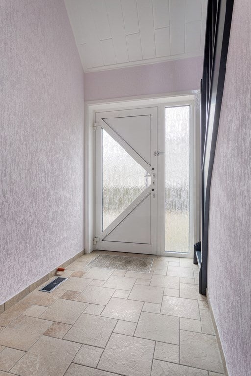 Ruime hal, toilet, meterkast (2018), kelderkast, trap naar de eerste verdieping en aan de voorzijde de keuken (13m2) en ruime woonkamer (34m2).