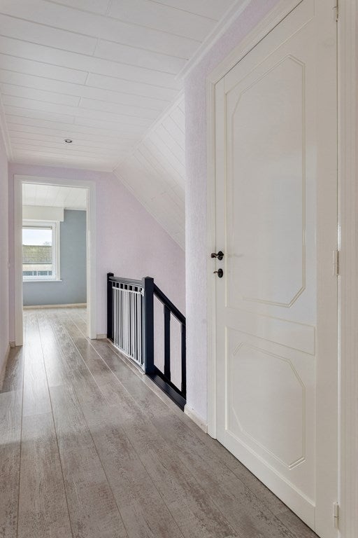 Nette tegelvloer op de begane grond, laminaatvloer op verdieping.