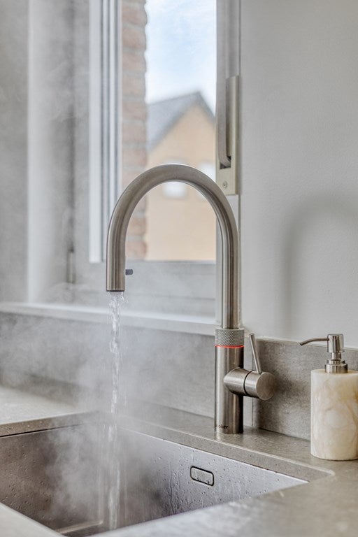 De keuken is vernieuwd in 2018 en voorzien van Siemens inbouwapparatuur, zoals een Quooker, inductiekookplaat, wasemkap, oven, koelkast en vaatwasser.