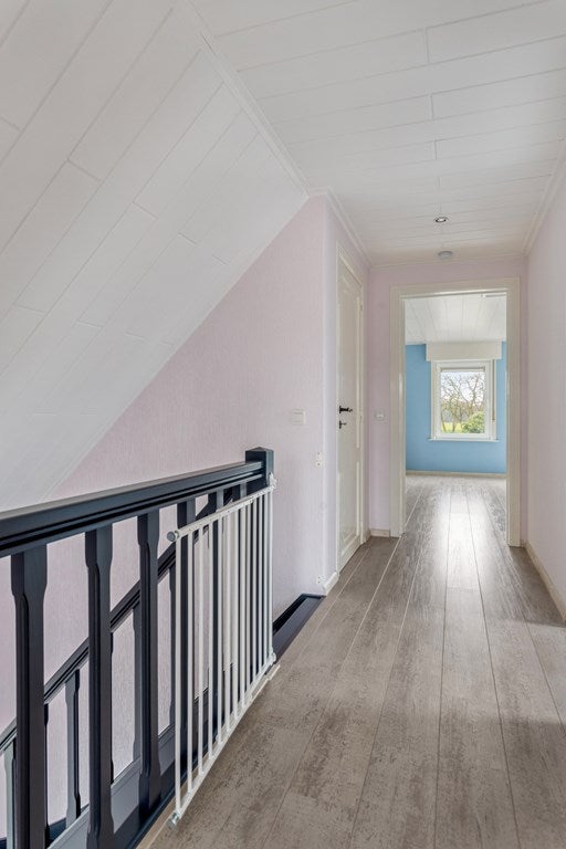Op de eerste verdieping is een ruime overloop met toegang tot 3 slaapkamers (10, 22 en 27m2) en een bergkast.