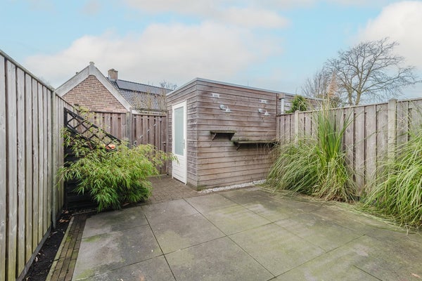 De verzorgd aangelegde achtertuin biedt een prettige combinatie van groen en bestrating en is een fijne plek om te ontspannen. Dankzij de overzichtelijke indeling is de tuin onderhoudsvriendelijk en biedt deze voldoende privacy. Achter in de tuin bevindt zich een vrijstaande houten berging, ideaal voor het stallen van fietsen, tuingereedschap of het creëren van extra bergruimte.