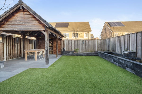 De begane grond is open en praktisch, met een neutrale keuken en een gezellige woonkamer. De eerste verdieping herbergt drie slaapkamers en een complete badkamer. De tweede verdieping is een multifunctionele zolder, ideaal voor (extra) slaapkamers of hobbyruimtes. Buiten vind je een mooi aangelegde tuin met een kapschuur en voldoende parkeerplaats op de oprit. Met energielabel A en diverse isolaties is dit een woning die comfort en duurzaamheid biedt.