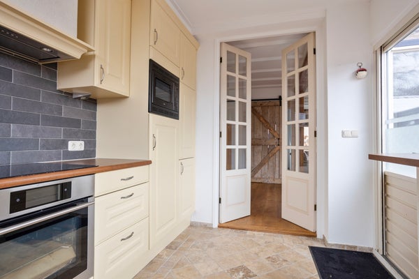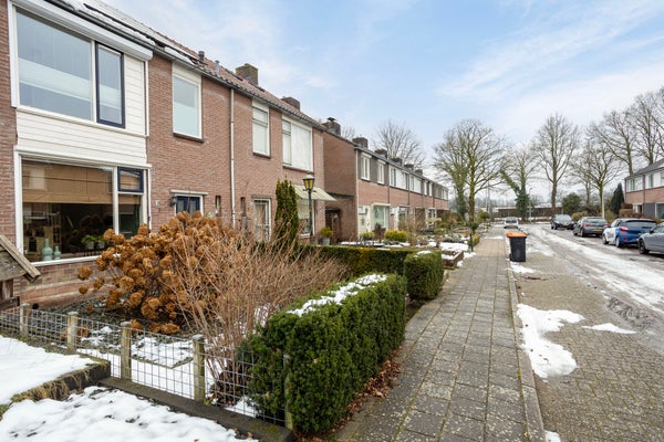 Te koop: een ruime en goed onderhouden tussenwoning met aanbouw, zonnepanelen, overkapping en een garagebox op een apart perceel. Gelegen in een rustige straat bij het dorpscentrum en sportverenigingen, biedt deze woning een betegelde achtertuin met een overkapping en berging. Op de eerste verdieping bevinden zich drie slaapkamers en een moderne badkamer met inloopdouche. De tweede verdieping aan de achterzijde herbergt een vierde slaapkamer en bergruimte. De begane grond heeft een ruime woonkamer met houtkachel en een keuken met moderne inbouwapparatuur. De woning beschikt over 12 zonnepanelen, vloerverwarming en is goed geïsoleerd. De garagebox met oprit bevindt zich direct achter de woning.