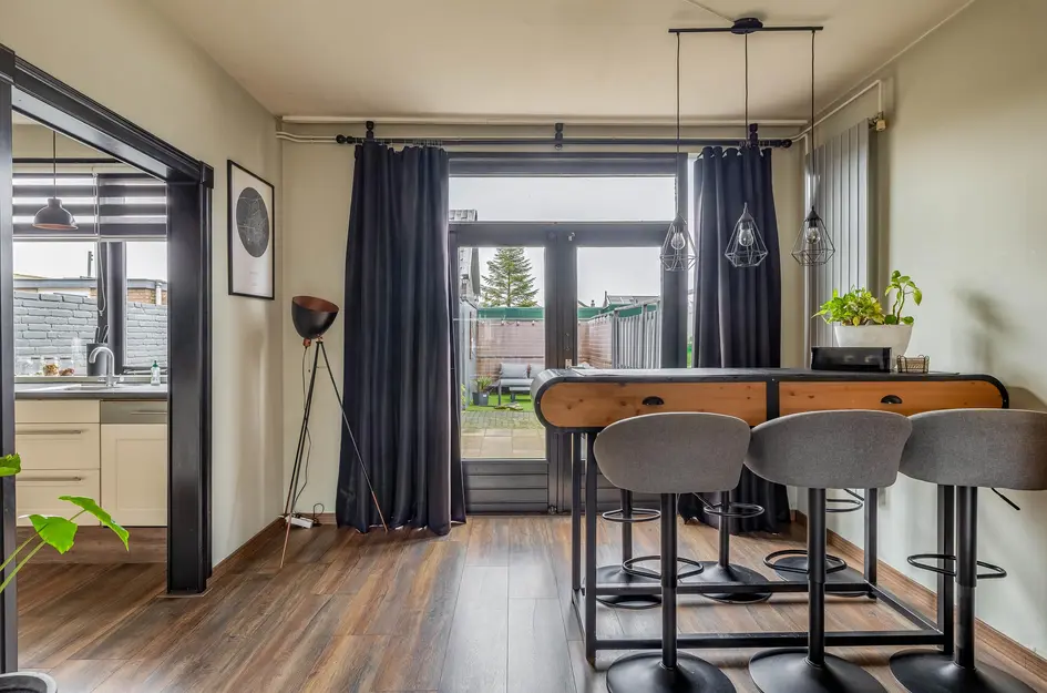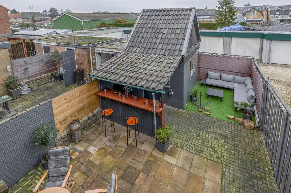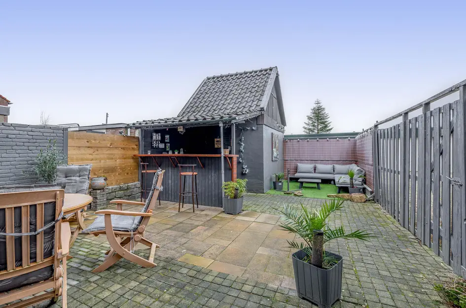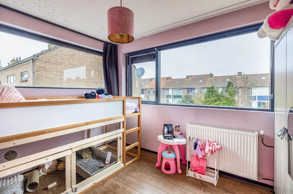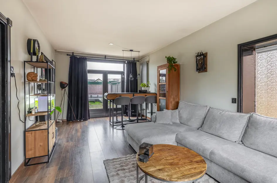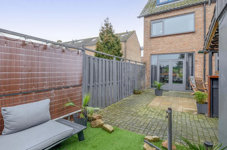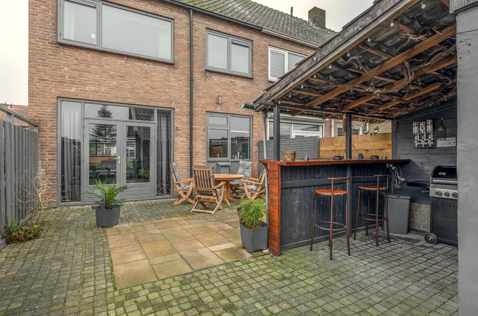 Deze ruime, lichte eengezinswoning heeft een praktische indeling. Op de begane grond bevindt zich een sfeervolle woonkamer met openslaande deuren naar de tuin en een halfopen keuken met inductiekookplaat, oven en vaatwasser. De eerste verdieping biedt twee slaapkamers van respectievelijk 12,5m² en 10m², een berging en een badkamer met ligbad en inloopdouche. De tweede verdieping heeft een royale slaapkamer van 15,5m² en extra bergruimte. De onderhoudsvriendelijke achtertuin met overkapping en bar is perfect om te ontspannen. Deze woning ligt in een rustige wijk met voorzieningen zoals scholen en winkels dichtbij. De inhoud is 340m³, woonoppervlakte 96m² op een perceel van 117m². Oplevering in overleg.