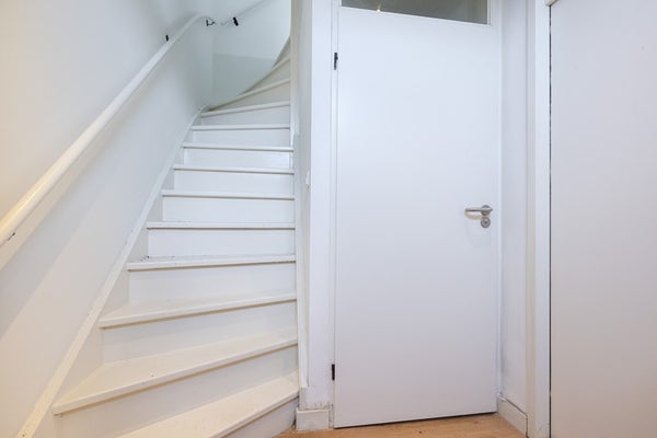 Laminaatvloer, meterkast, trapopgang en toilet.