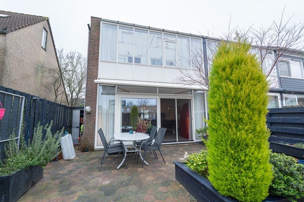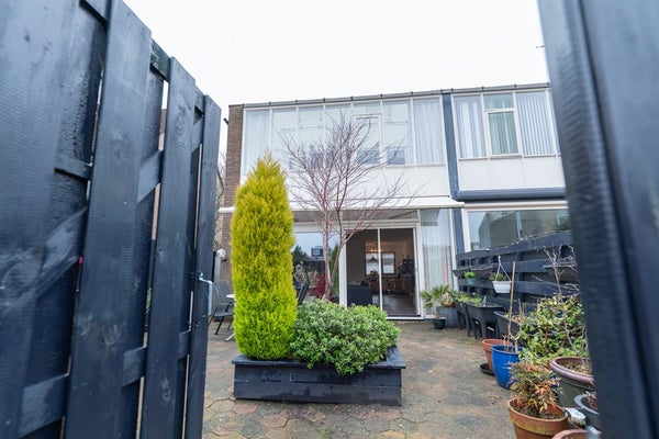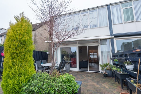 De achtertuin is gelegen op het zonnige zuidwesten, wat betekent dat u hier van de vroege middag tot de late avond van de zon kunt genieten. De tuin is verzorgd en onderhoudsarm aangelegd met tegels en diverse potten met groen, waardoor u meer tijd overhoudt om te ontspannen. Er is een achterom aanwezig, wat de toegankelijkheid vergroot. Een groot gemak is de parkeergelegenheid: zowel aan de voorzijde als direct achter de woning is er voldoende ruimte om de auto te parkeren.