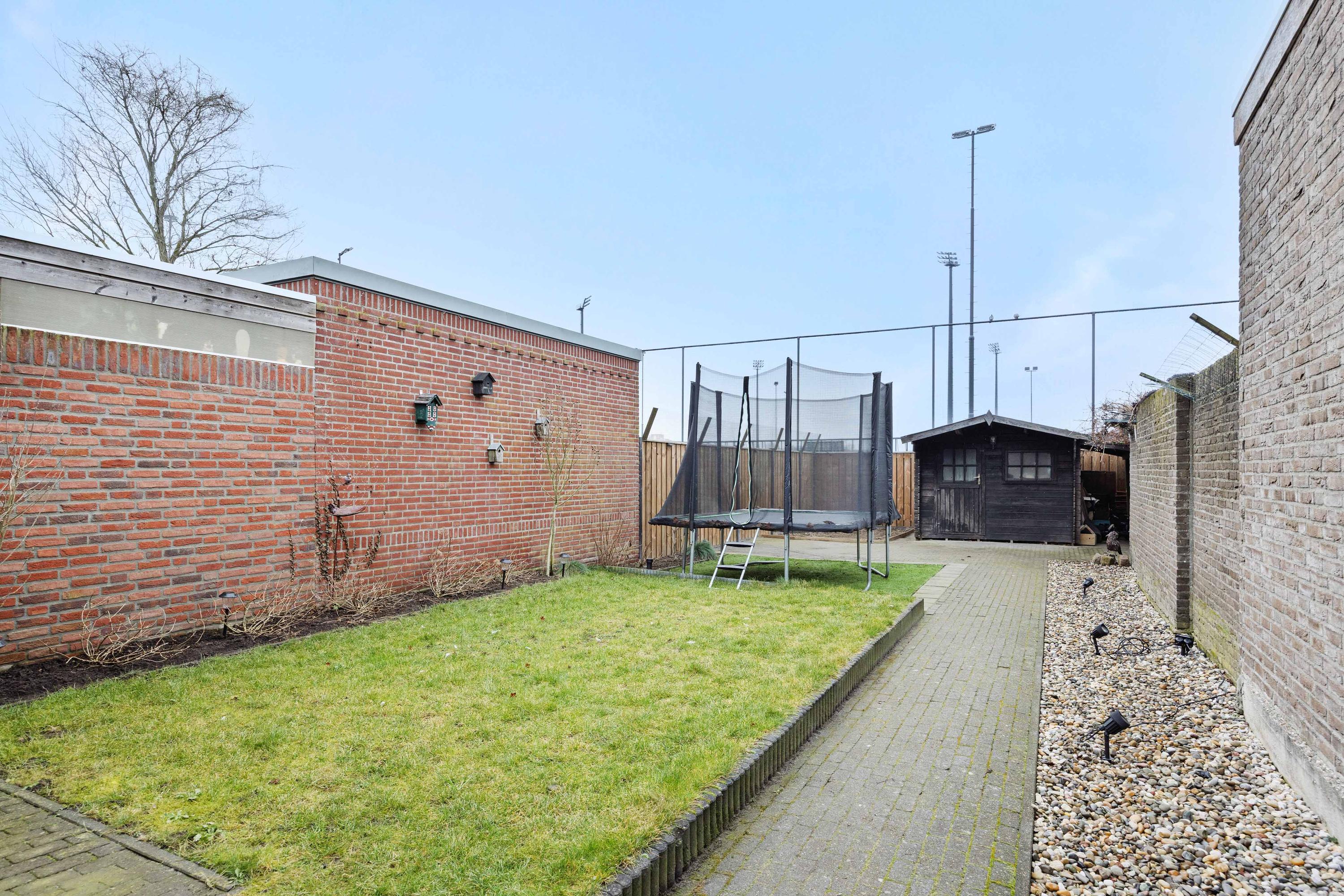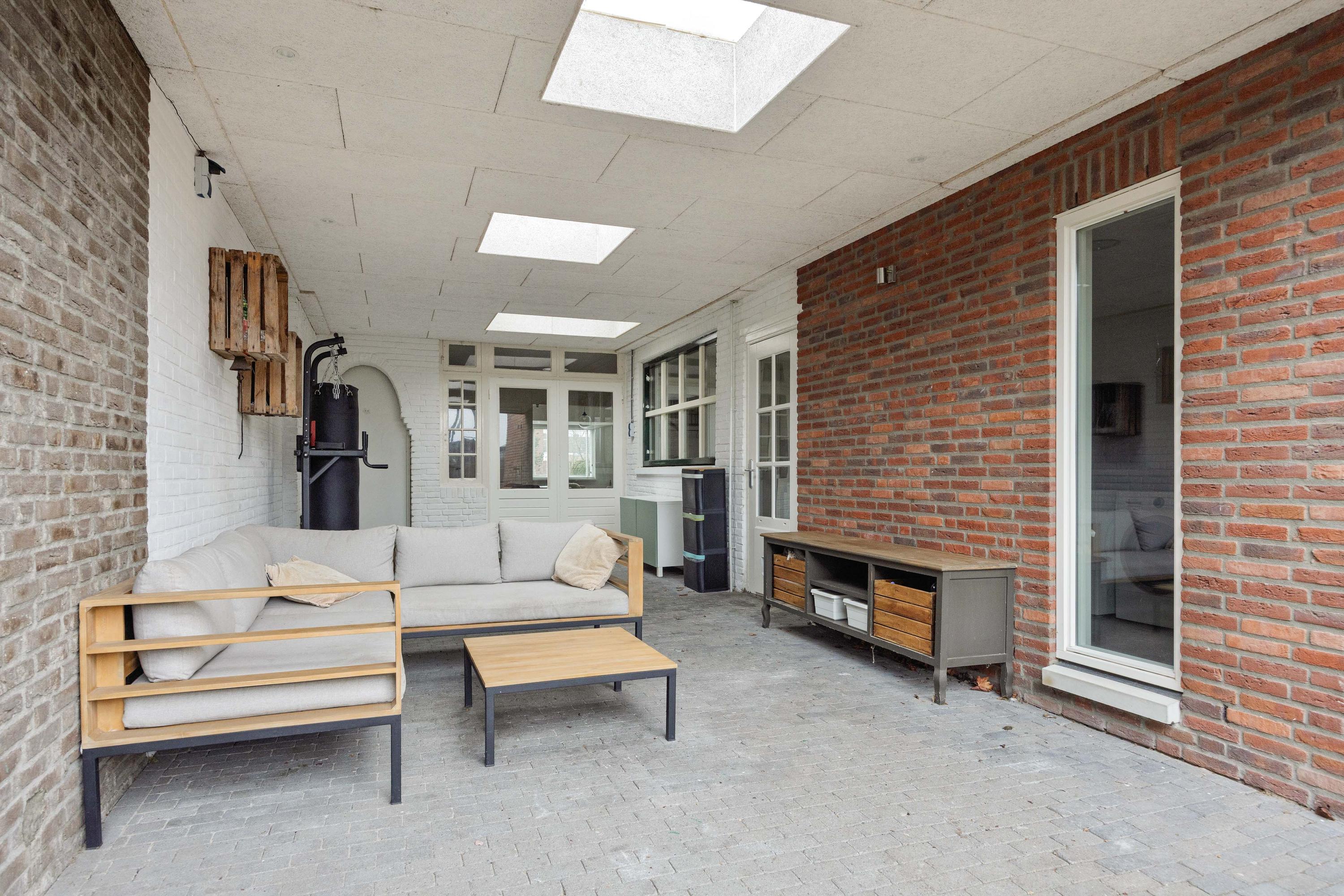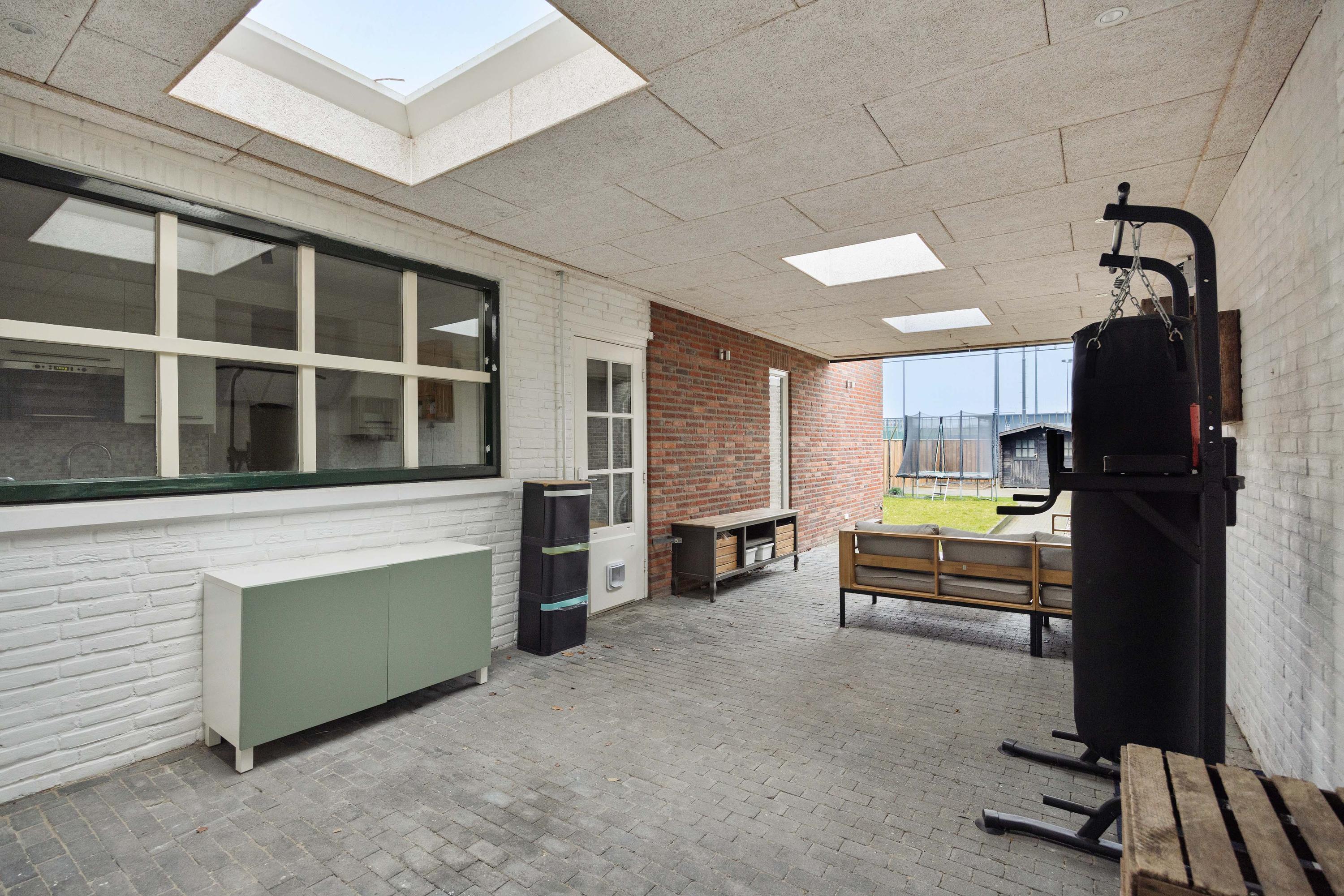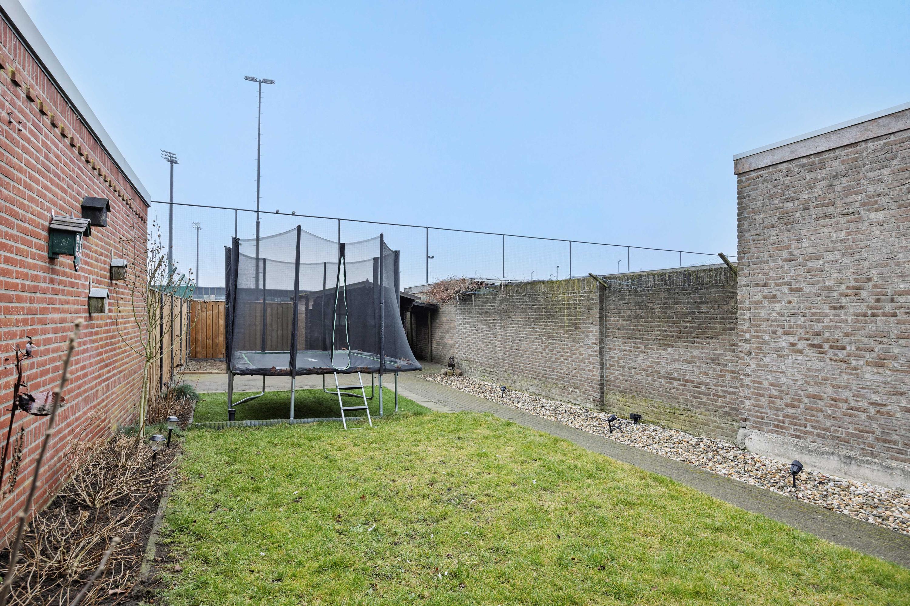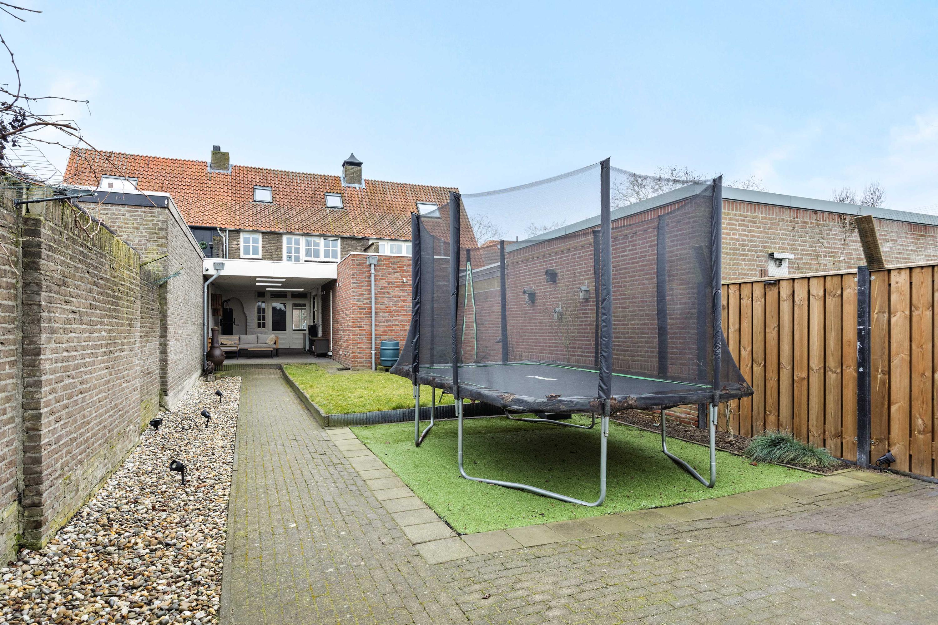 De achtertuin is diep en bevat een houten berging. Ook is er een overkapte zitplek voor extra comfort. Dit huis biedt veel ruimte en ligt perfect voor een gezin.