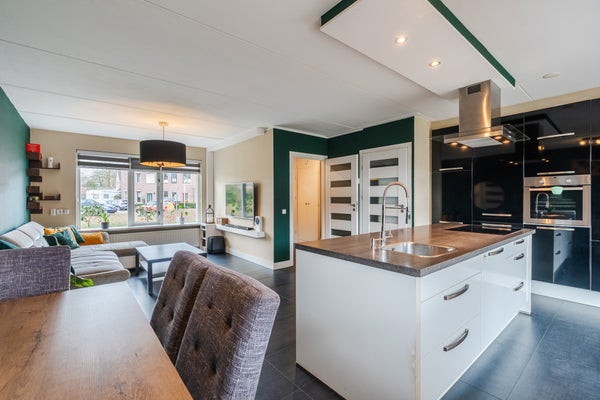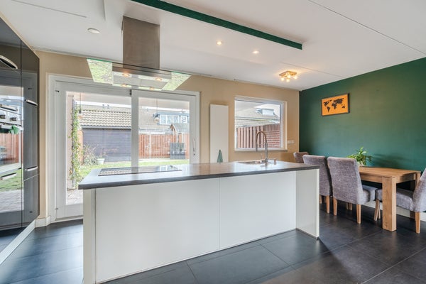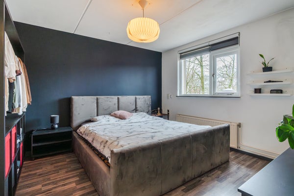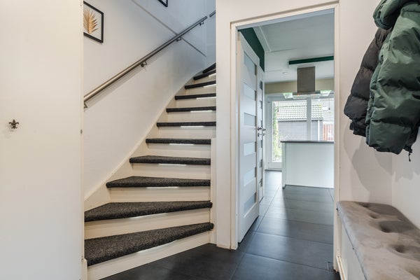 Deze moderne starterswoning in de wijk Rijpelberg biedt een prachtig uitzicht op een groen plantsoen. De woonkamer aan de voorzijde zorgt voor optimaal zicht op het gazon en de grote bomen. De gemoderniseerde keuken aan de achterzijde bevat een kook-/spoeleiland en biedt toegang tot de achtertuin via een schuifpui. De onderliggende tuin is onderhoudsarm met een terrasoverkapping en een vrijstaande stenen berging van ongeveer 8 m2. Op de eerste verdieping bevinden zich vier royale slaapkamers, met de grootste slaapkamer aan de achterzijde dankzij een dakkapel. De vernieuwde badkamer beschikt over een inloopdouche en een wastafelmeubel. Met een centrale ligging nabij voorzieningen, speelplekken, en makkelijk parkeren is dit een ideale woning voor starters.