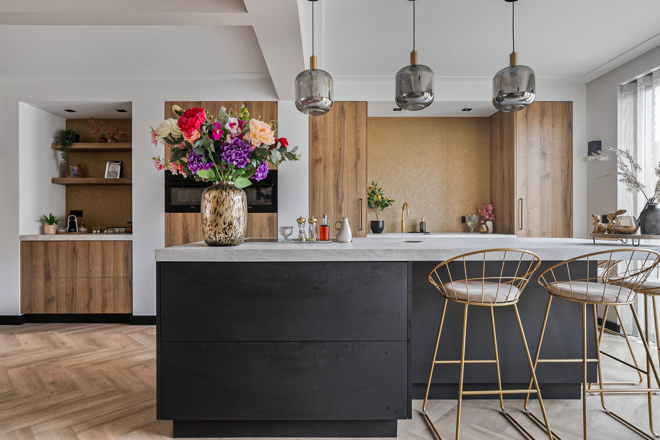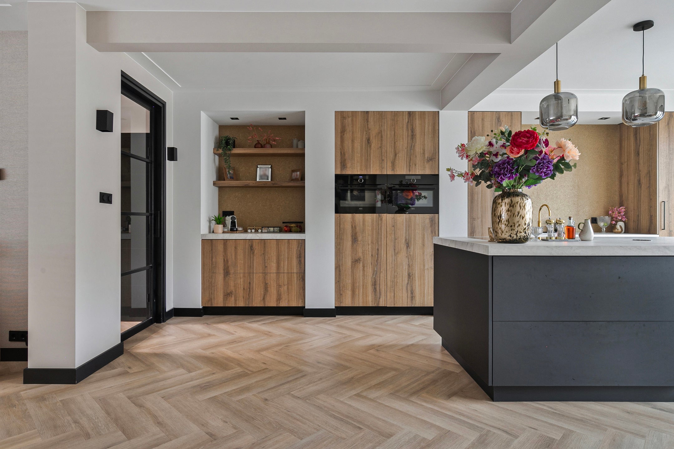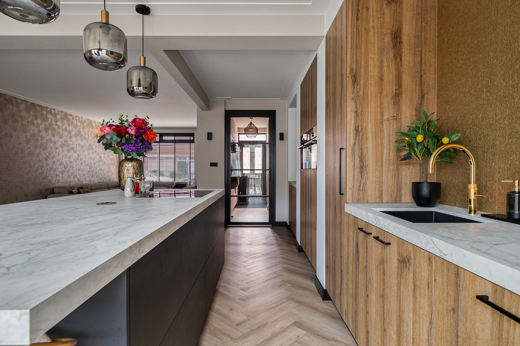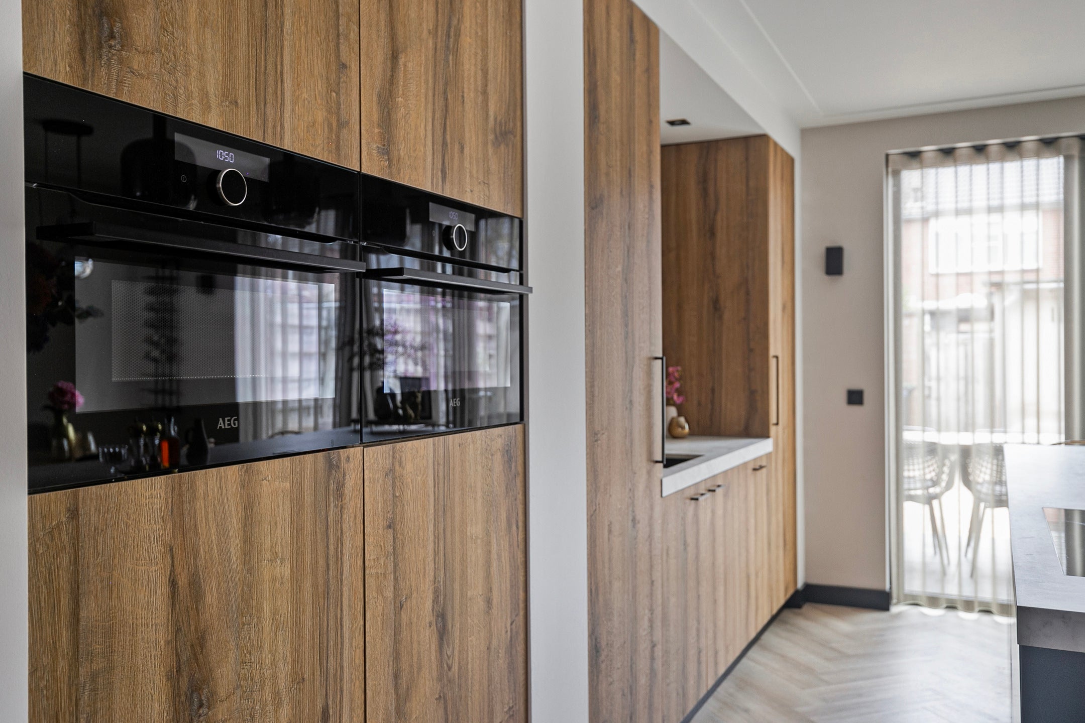 Deze over de volle breedte uitgebouwde tussenwoning aan de Kruisbekstraat 29 in Helmond is verrassend ruim. De uitbouw biedt ruimte voor een schitterende keuken met een kookeiland en een sfeervolle open indeling. De begane grond heeft een ruime ontvangsthal, een lichte woonkamer met grote ramen en openslaande deuren naar de tuin. De moderne keuken is volledig uitgerust met diverse inbouwapparatuur.