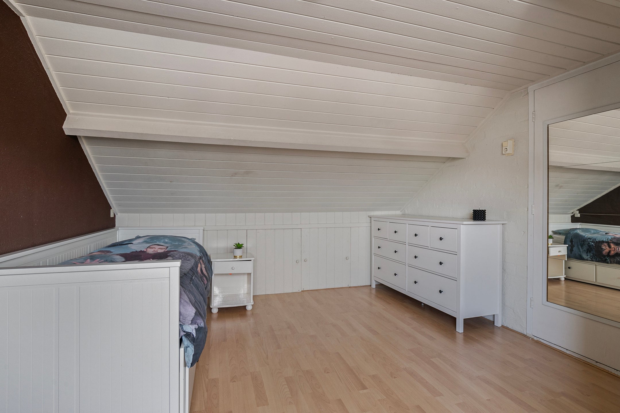 Op de eerste verdieping bevinden zich drie slaapkamers, terwijl de badkamer een comfortabele douche en natuurlijk licht biedt. De tweede verdieping, bereikbaar via een vaste trap, heeft een grote dakkapel en extra bergruimte. De onderhoudsvriendelijke tuin met een royaal terras is perfect voor zonliefhebbers. Deze ideale gezinswoning ligt in een kindvriendelijke buurt, vlakbij scholen en winkels.