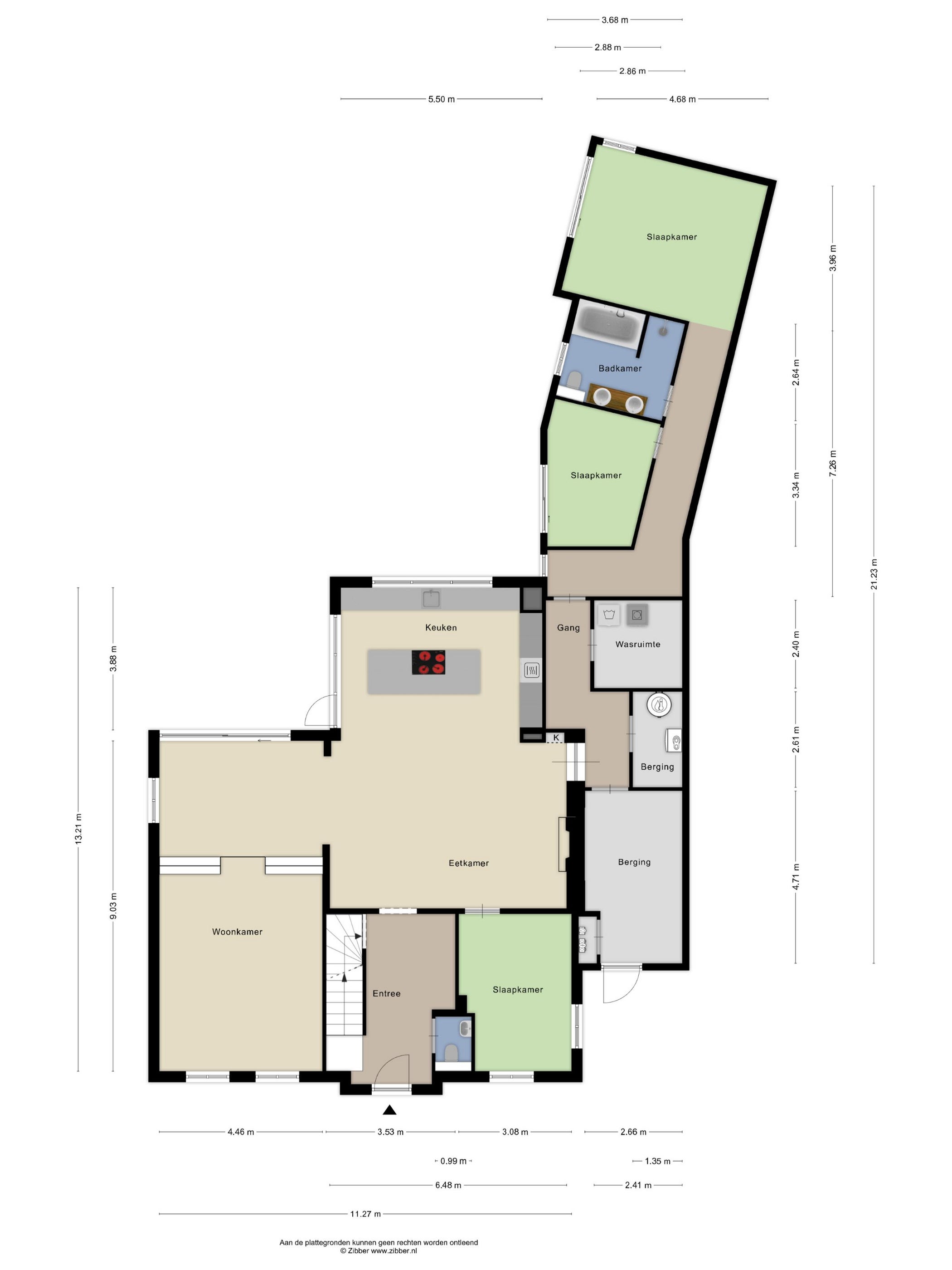 - De tussenwoning heeft een woonoppervlakte van 467 m² en beschikt over 14 kamers, waarvan 7 slaapkamers;