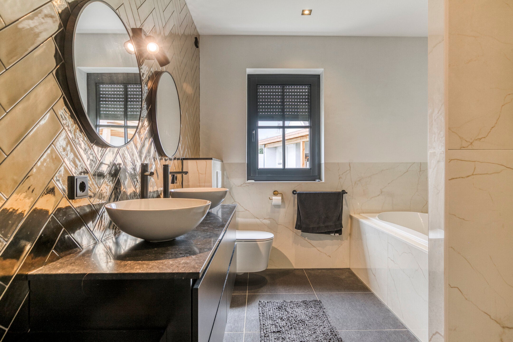 Deze stijlvolle rietgedekte villa in Helmond, gelegen aan Coppesdonk 9, beschikt over een royale inhoud van 1.732 m³ en een woonoppervlak van 477 m². Met zes volwaardige slaapkamers biedt deze woning ruimte voor een groot gezin, waarvan twee op de begane grond. Het souterrain van 124 m², met eigen entree, is veelzijdig en geschikt voor bijvoorbeeld een kantoor of wellnessruimte. De villa is duurzaam gebouwd in 2023 met een A+++ energielabel en is volledig gasloos. Binnen vindt u een woonkamer met een speelse indeling en een elegante visgraat tegelvloer, verbonden met een ruime keuken die van alle luxe voorzien is. De eerste verdieping herbergt vier grote slaapkamers en twee badkamers. In de tuin, op het zuidwesten, zijn twee terrassen waar u van de zon kunt genieten. Een unieke kans voor wie stijlvol en comfortabel wil wonen.