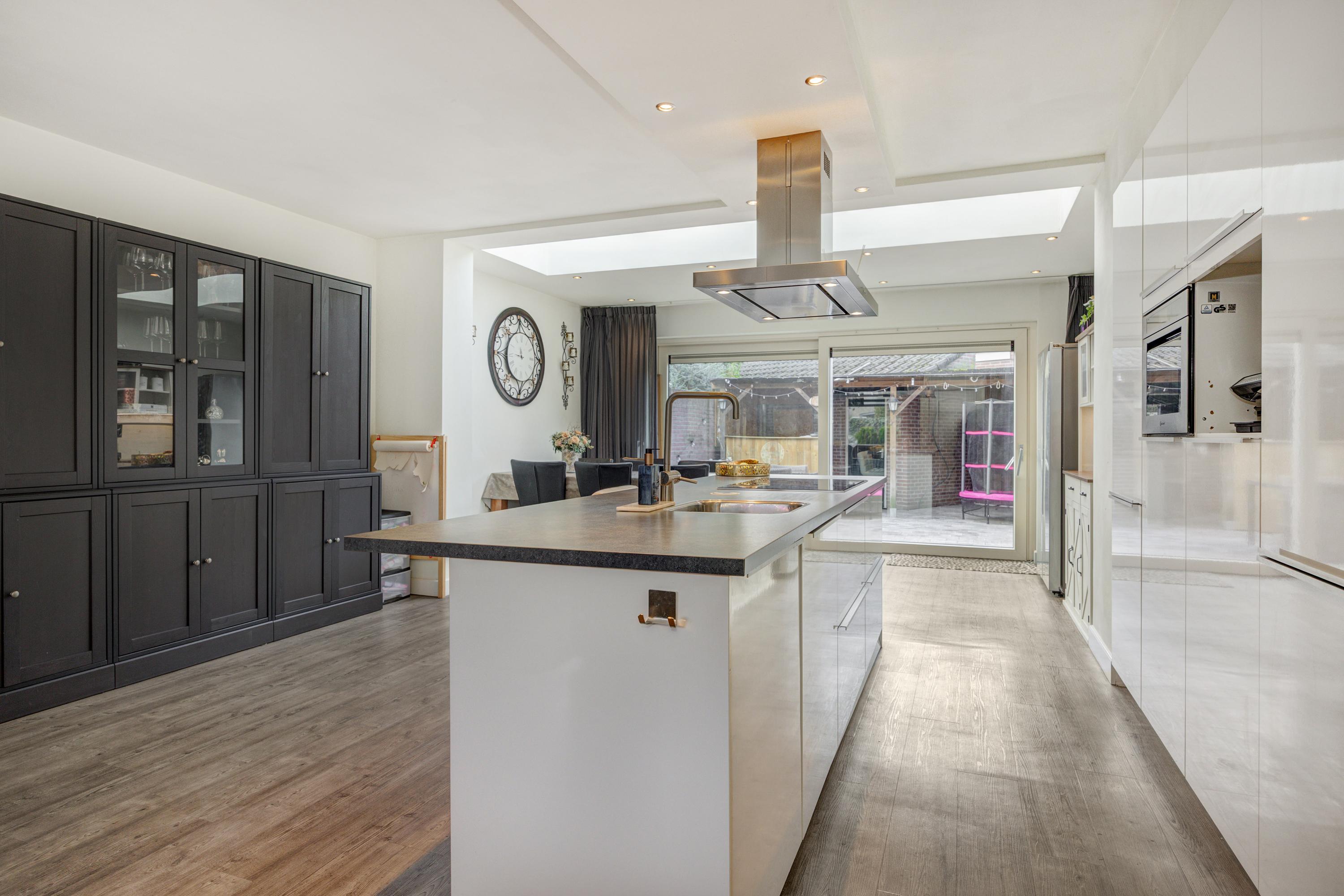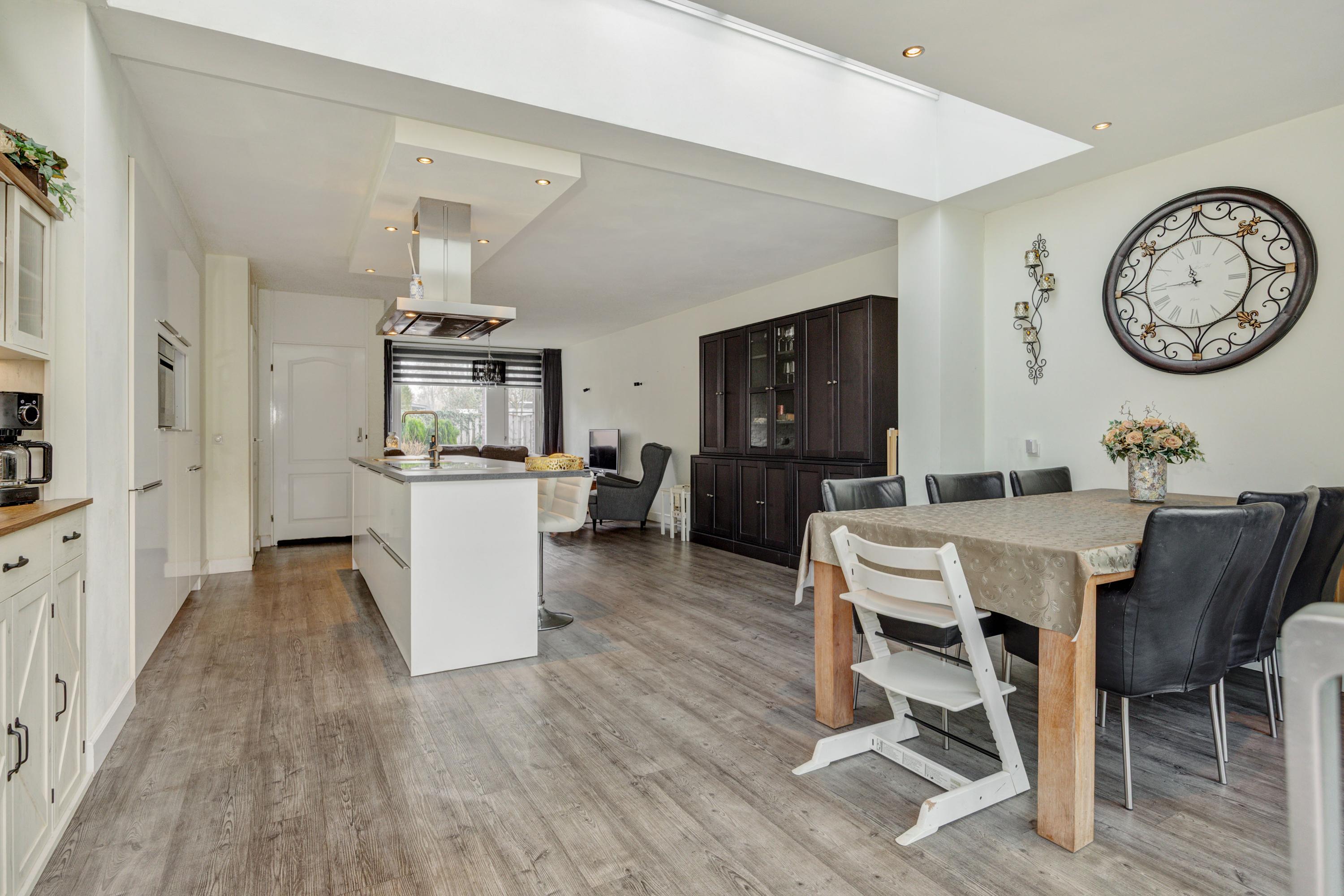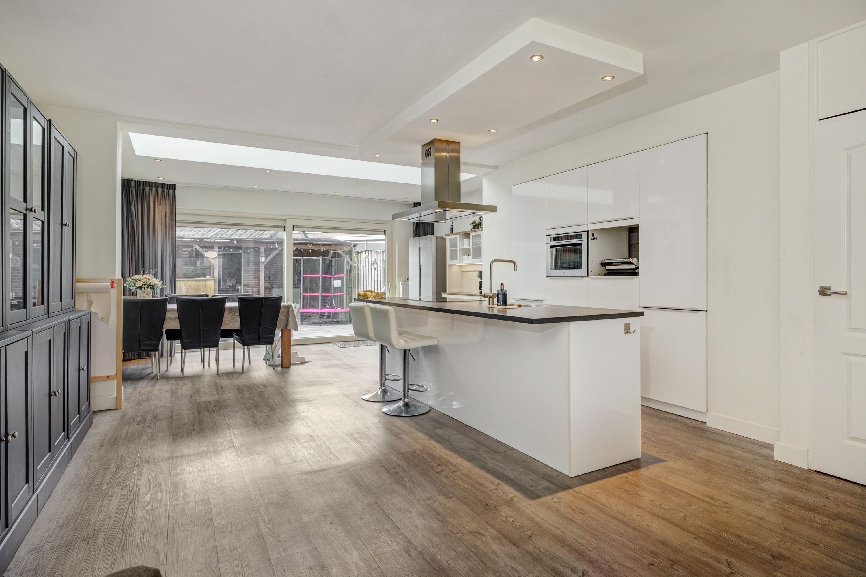 Deze uitgebouwde tussenwoning aan de Limburghof 15 biedt 121 m² woonoppervlakte en beschikt over vier slaapkamers. Je komt binnen via een hal met toegang tot de toiletruimte en de gezellige leefruimte. De woonkamer aan de voorzijde is licht en biedt een speelse indeling met een moderne keuken in het midden, uitgerust met een kookeiland en een bar. De uitbouw is perfect voor een grote eettafel, met veel lichtinval door de schuifpui naar de tuin op het zuidwesten. De eerste verdieping herbergt drie slaapkamers en een badkamer met ligbad. De tweede verdieping biedt extra ruimte en mogelijkheden voor een slaapkamer. Gelegen in de rustige wijk Rijpelberg met nabijgelegen recreatiemogelijkheden en voorzieningen zoals een supermarkt.
