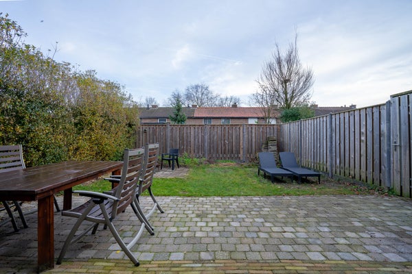 Uw royale tuin biedt alle ruimte om naar eigen smaak in te richten. Het fijne formaat en de achterom maken het een praktische en prettige buitenruimte.