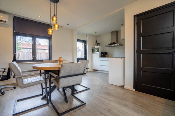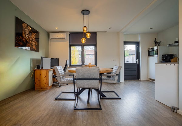 Hier creëert u moeiteloos een fijne, knusse zithoek. De pvc vloer met vloerverwarming en de gestuukte wanden en plafonds zorgen voor comfort en een rustige basis. Het grote raam aan de voorzijde geeft ruime lichtinval. Een gaskachel draagt bij aan de sfeer. Aansluitend is er een royale ruimte voor uw eettafel. De airco kan koelen én verwarmen, ideaal voor elk seizoen.