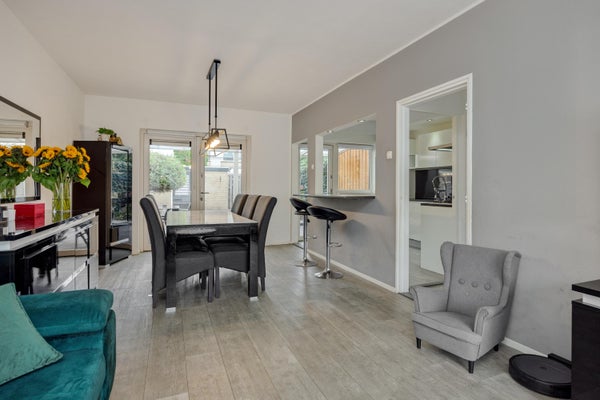 - De tussenwoning heeft een woonoppervlakte van 95 m² en beschikt over 6 kamers, waarvan 3 slaapkamers;