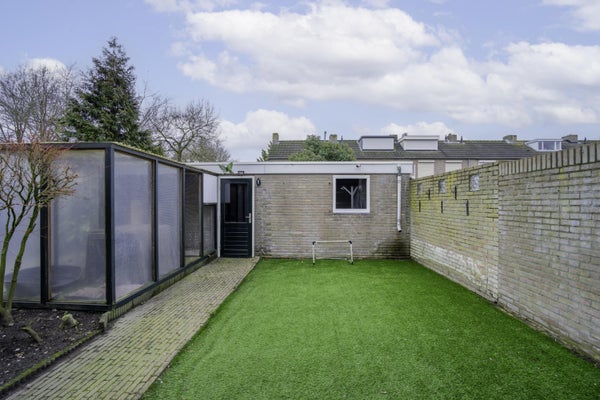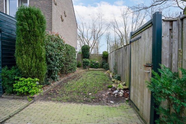 Buiten geniet u van een eenvoudige maar royale achtertuin, aangevuld met een zij tuin: ideaal bij een hoekwoning, met net wat extra ruimte en mogelijkheden. De overkapping maakt het mogelijk om al vroeg in het seizoen comfortabel buiten te zitten. Bovendien is er een achterom, wel zo praktisch.