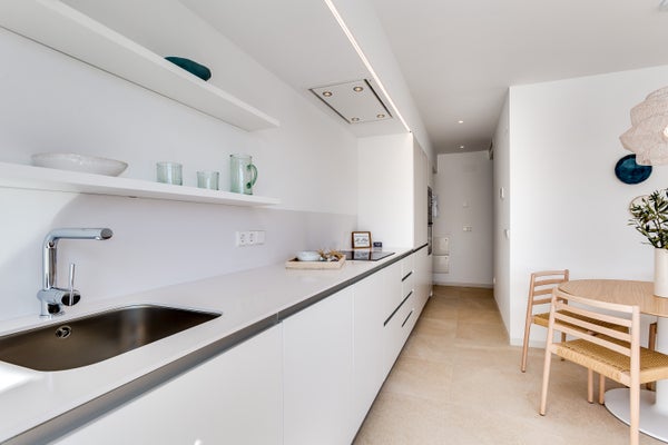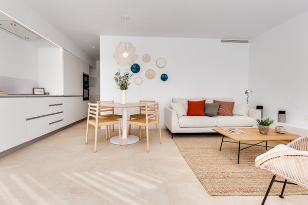 Residentie Mirasal in Los Balcones Torrevieja biedt moderne appartementen met 2 slaapkamers en 2 badkamers, allemaal voorzien van een privé tuin, terrassen en solarium. De begane grond woning met bouwnummer 3 heeft een overdekt terras van circa 14 m² en een tuin van circa 55 m². Bewoners genieten van een gezamenlijk Infinity zwembad en uitgebreide wandelpaden in de centrale tuin van 2687 m². Gelegen op 3,5 kilometer van Punta Prima-strand en nabij golfdomains, zijn de appartementen goed bereikbaar van de luchthavens van Alicante en San Javier. Verder biedt het project bij de prijs inbegrepen parkeerplaatsen en een berging. De appartementen zijn volledig geïsoleerd en hebben een energiebesparende warmtepomp. Prijs vanaf € 259.000.