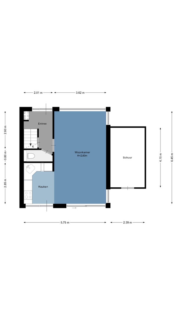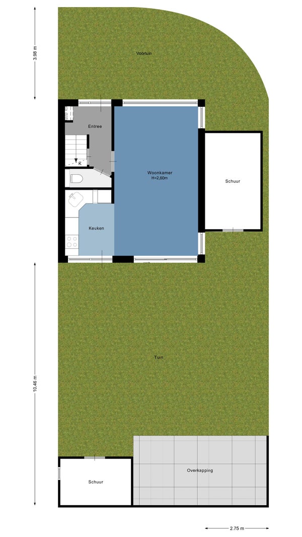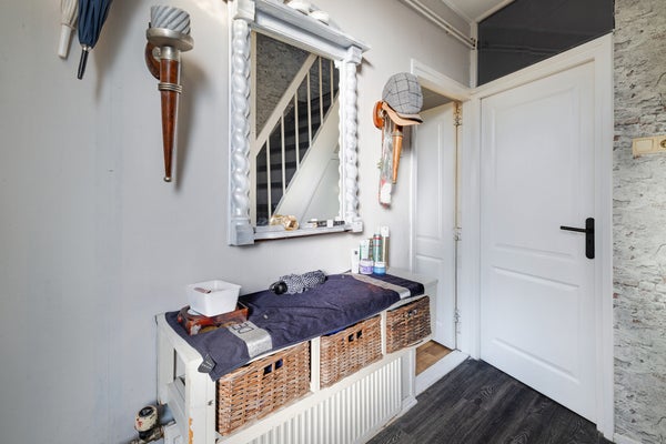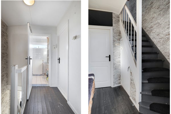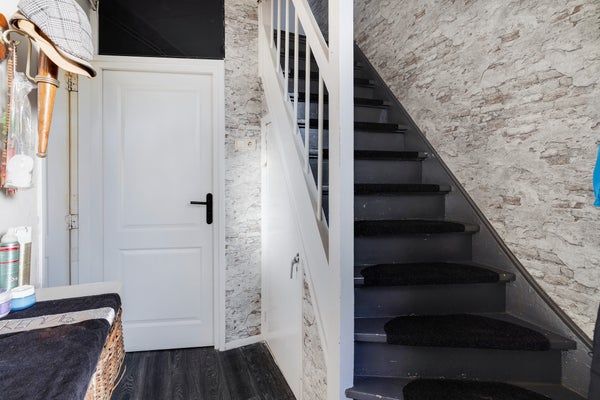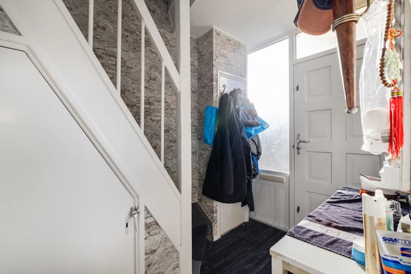 Via de entree kom je binnen in de hal met meterkast, toiletruimte en trapopgang naar de eerste verdieping. Vanuit de hal is de woonkamer bereikbaar.