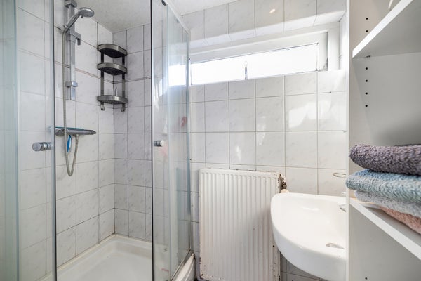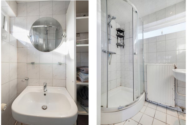 Badkamer – voorzien van douche en wastafel, functioneel maar dient gemoderniseerd te worden.