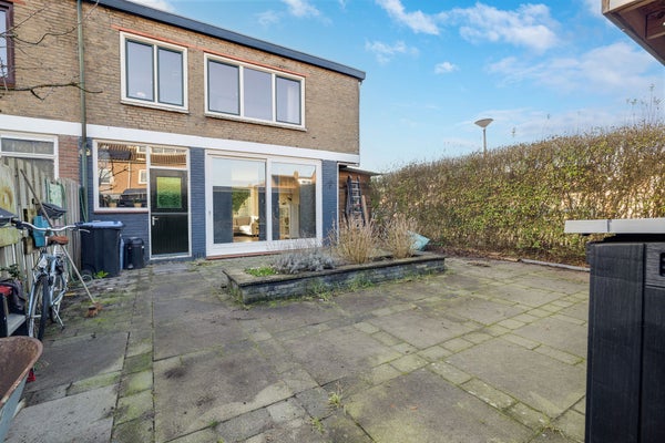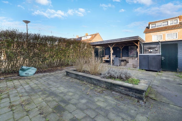 Rustig gelegen eengezinsHOEKwoning met drie slaapkamers, balkon, 2 bergingen en overkapping in de achtertuin.
