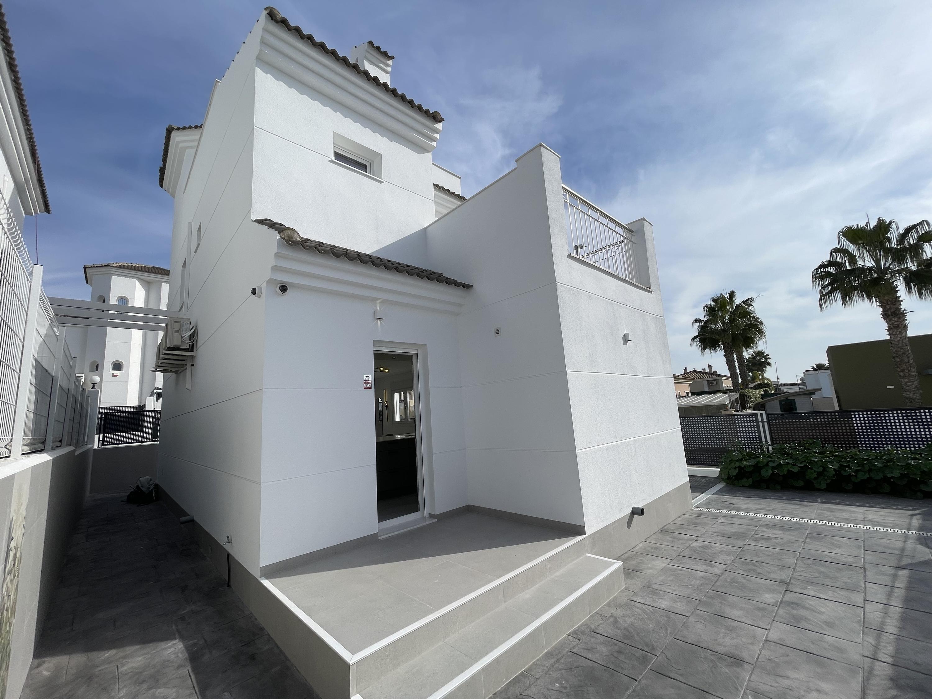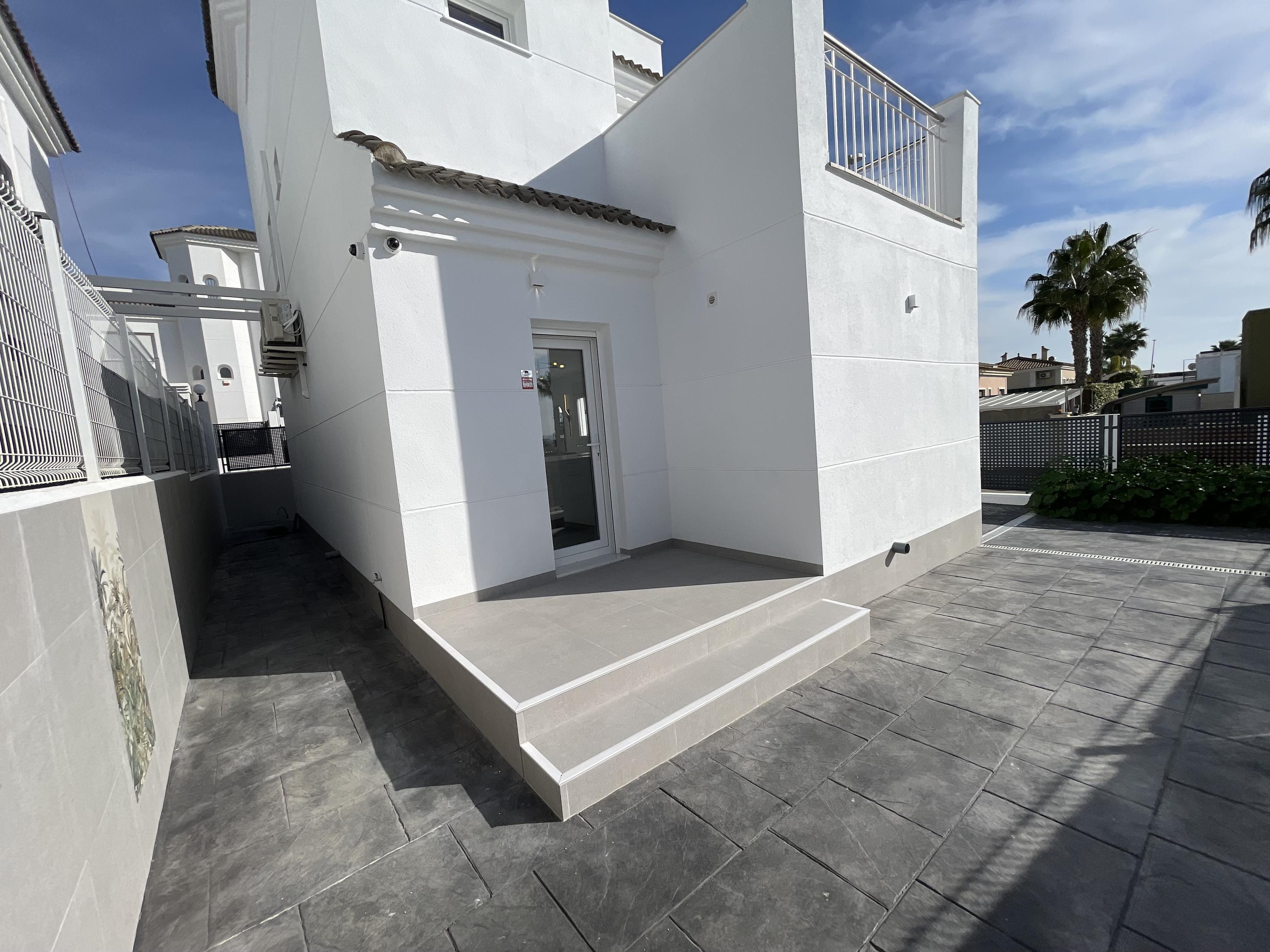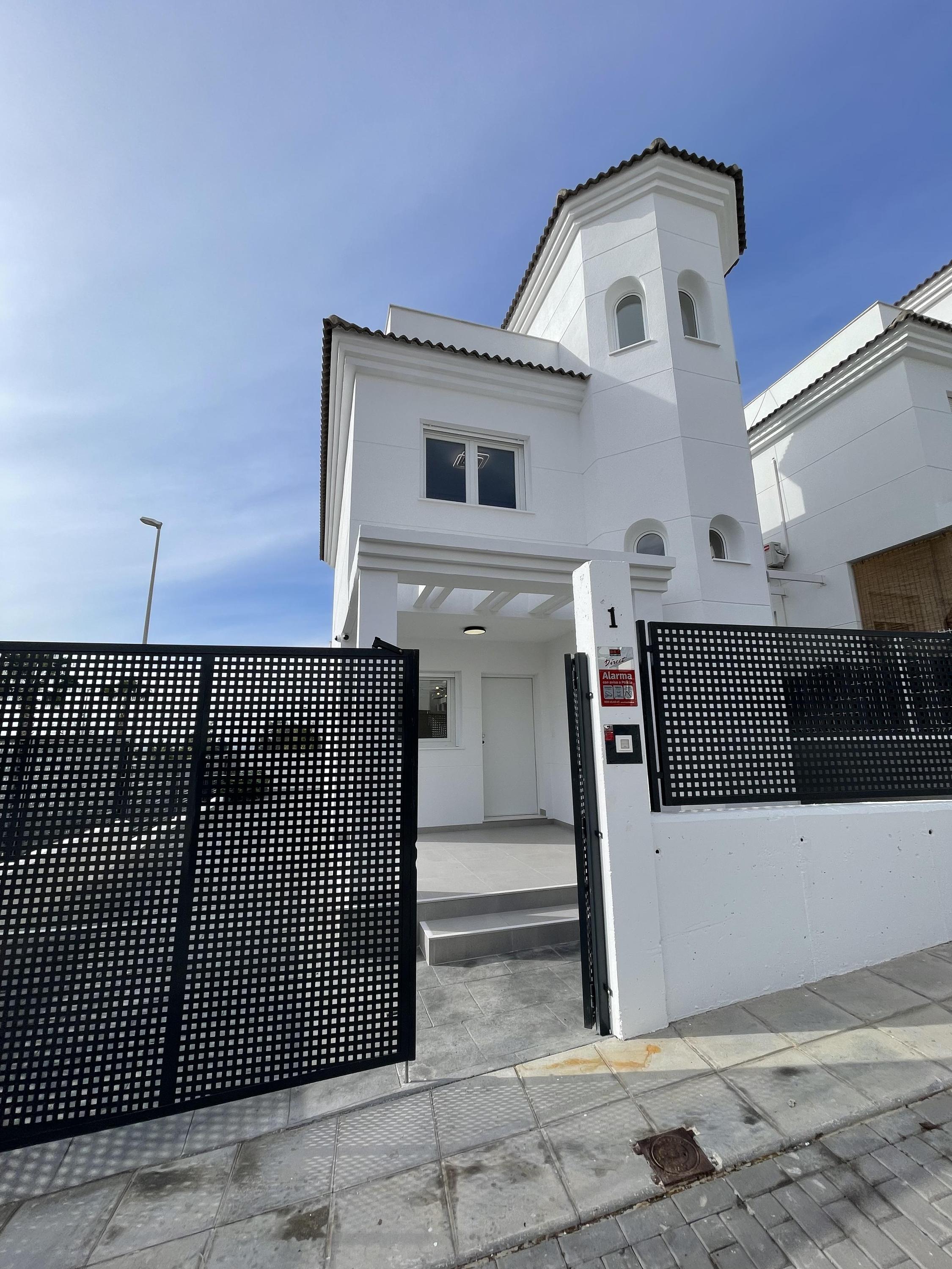 Deze luxe, vrijstaande villa, Casa 1, ligt in de populaire urbanisatie La Marina, San Fulgencio. Met 109 m² woonoppervlak biedt het huis 2 slaapkamers, 2 badkamers, een woonkamer en een woonkeuken. Twee terrassen, op de eerste en tweede verdieping, bieden prachtig uitzicht en gelegenheid om van de Spaanse zon te genieten. Het perceel van 171 m² heeft een ruim gemeenschappelijk zwembad in de buurt. De villa is recent gemoderniseerd met hoogwaardige materialen, heeft nieuwe kunststof kozijnen, een slimme meterkast en airco. Speciaal voor deze woning is er een vergunning mogelijk voor verhuur. Het huis is omgeven door restaurants, winkels en markten, en het strand is slechts 6 km verwijderd.