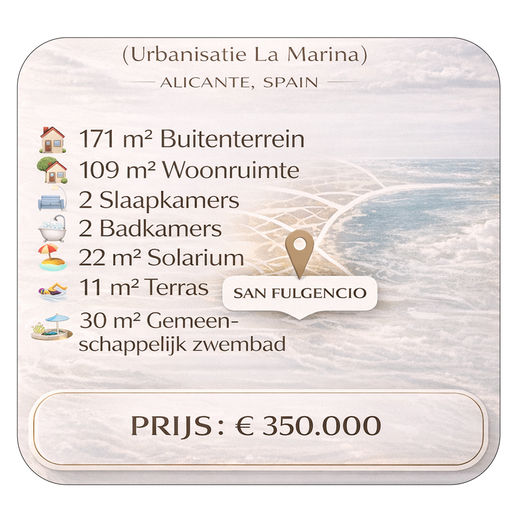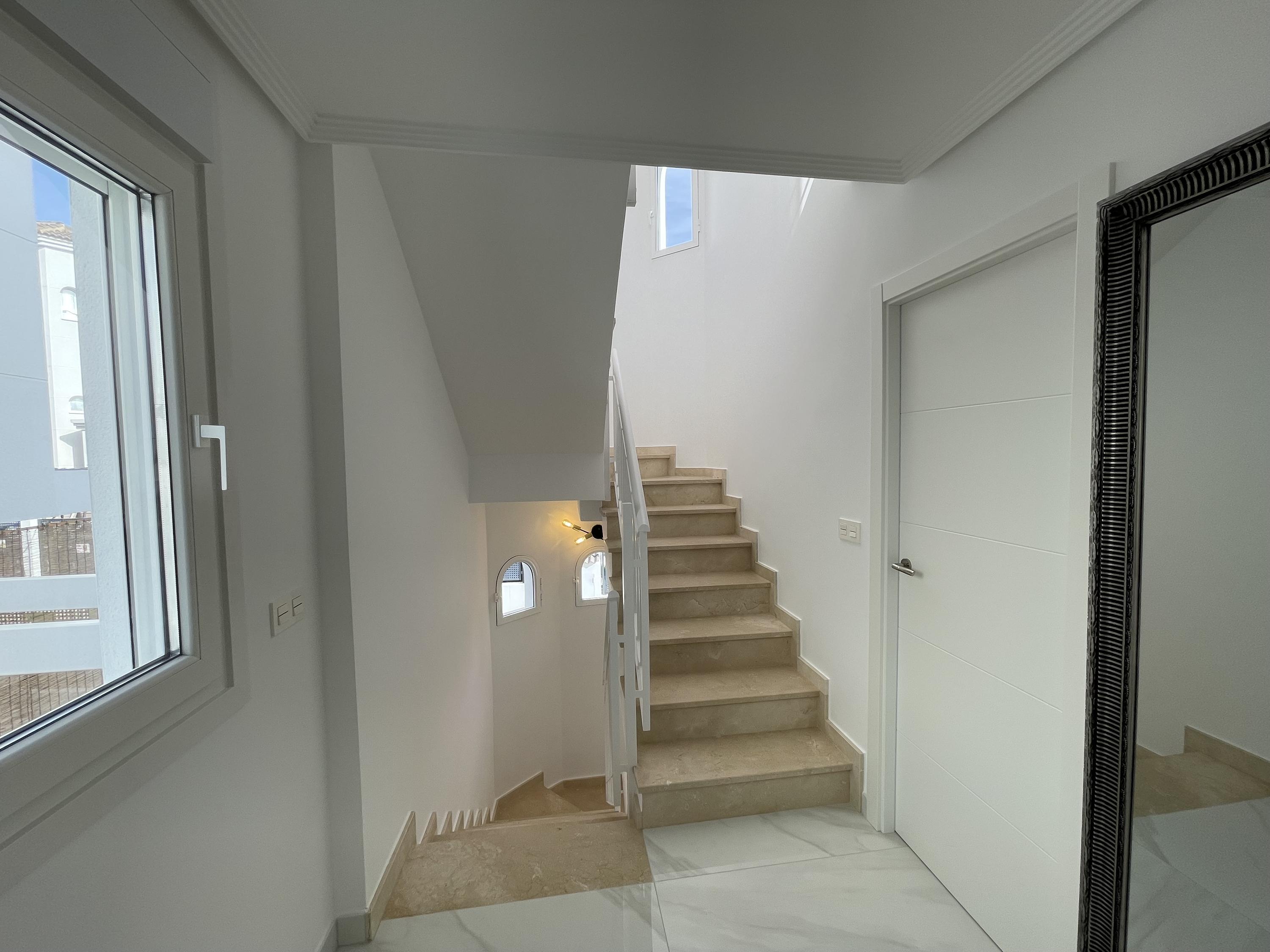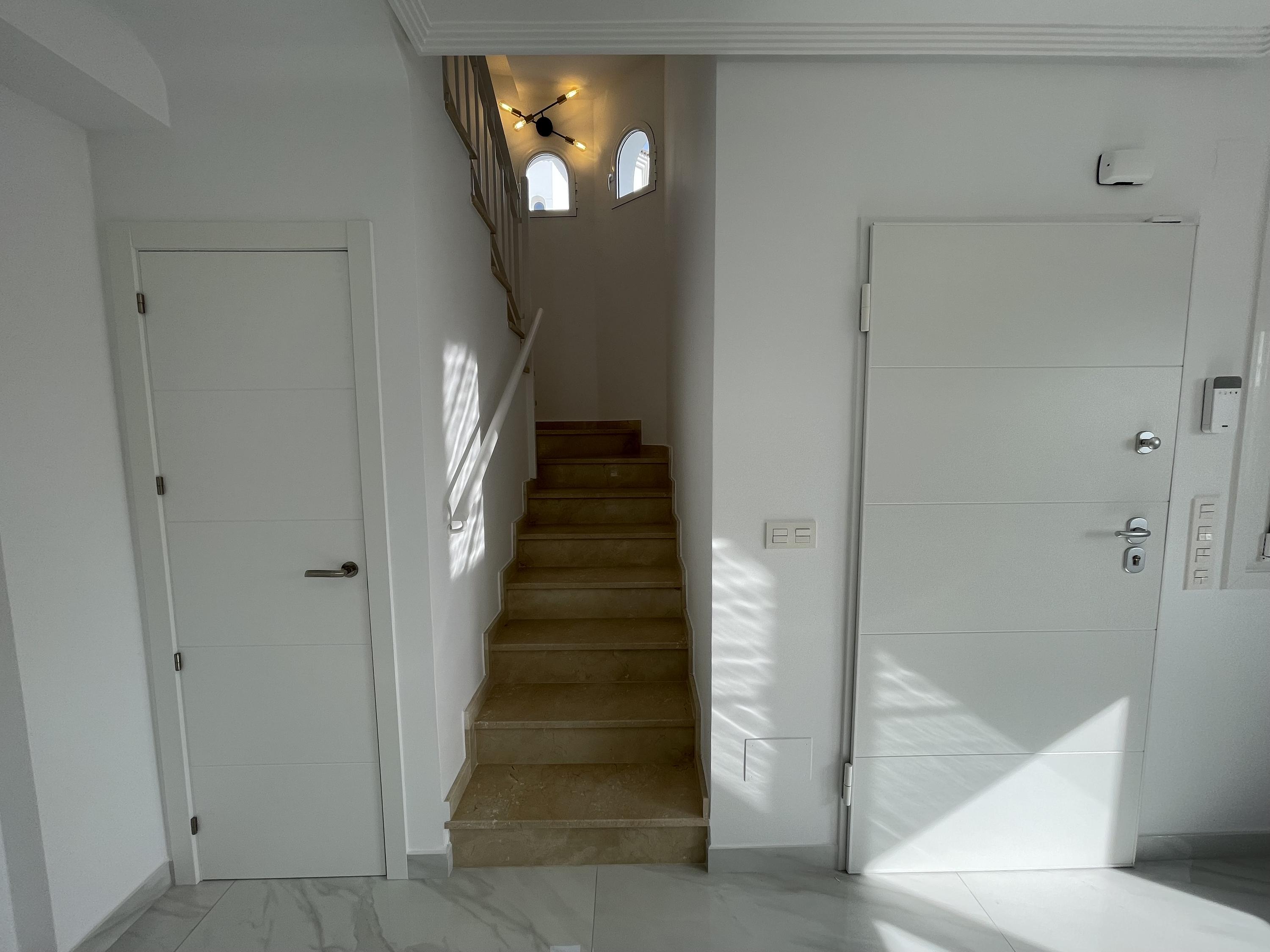 Deze luxe, vrijstaande villa, Casa 1, ligt in de populaire urbanisatie La Marina, San Fulgencio. Met 109 m² woonoppervlak biedt het huis 2 slaapkamers, 2 badkamers, een woonkamer en een woonkeuken. Twee terrassen, op de eerste en tweede verdieping, bieden prachtig uitzicht en gelegenheid om van de Spaanse zon te genieten. Het perceel van 171 m² heeft een ruim gemeenschappelijk zwembad in de buurt. De villa is recent gemoderniseerd met hoogwaardige materialen, heeft nieuwe kunststof kozijnen, een slimme meterkast en airco. Speciaal voor deze woning is er een vergunning mogelijk voor verhuur. Het huis is omgeven door restaurants, winkels en markten, en het strand is slechts 6 km verwijderd.