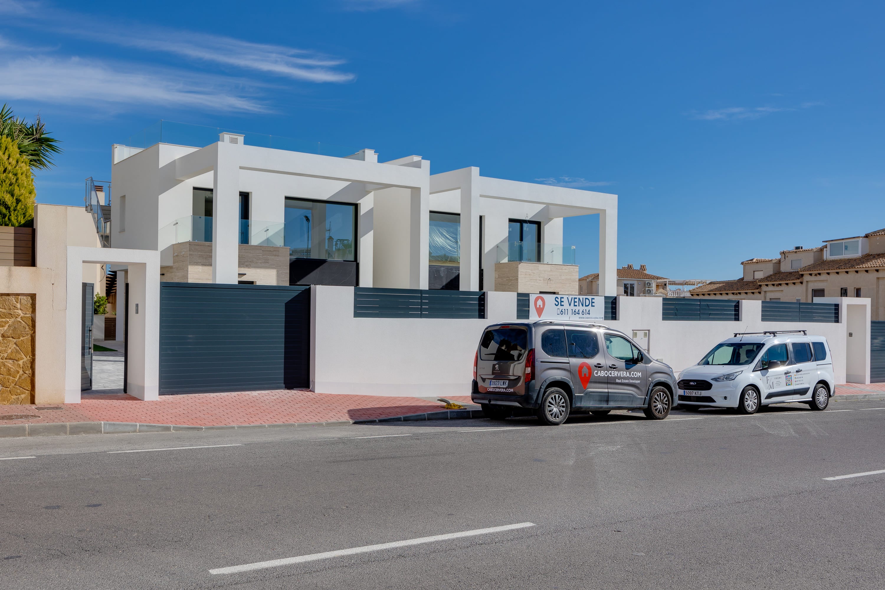 In het hart van Torrevieja zijn twee moderne villa's gebouwd, op slechts 1,5 km van het prachtige La Mata strand. Elke villa beschikt over 4 slaapkamers, 3 badkamers, en een apart toilet, samen met twee ruime woonkamers en een keuken. Het perceel van 420 m² biedt een vrijstaand huis met een woonoppervlakte van 238 m², inclusief een privézwembad dat perfect is voor de warme dagen. Geniet van buitenleven op het grote dakterras van 72 m², het balkon, en het tuinterras. In de onderbouw vindt u de vierde slaapkamer en een grote berging. De villa is volledig geïsoleerd en heeft een onderhoudsvriendelijke tuin met parkeergelegenheid op eigen terrein.