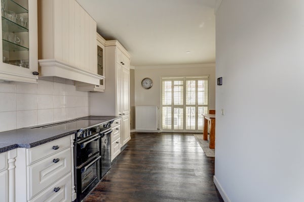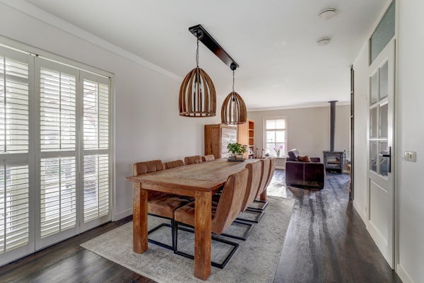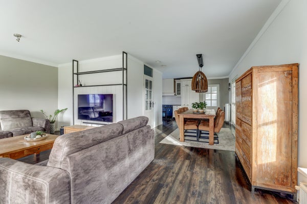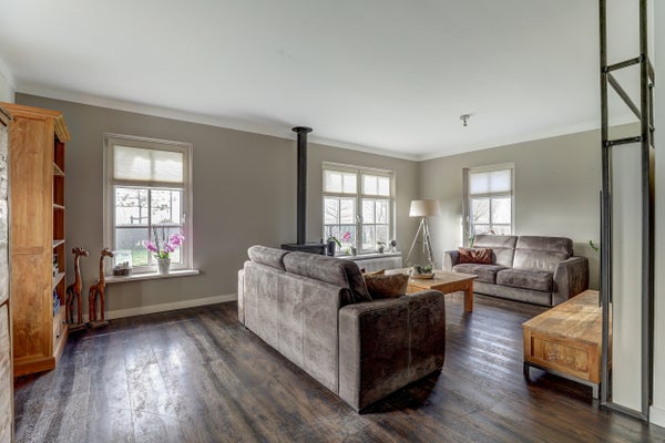 Deze vrijstaande woning, gelegen tussen Harlingen en Franeker, combineert het buitenleven met de nabijheid van de stad. Met een terrein van 3480 m2 biedt het mogelijkheden voor paardenliefhebbers, inclusief een Eb en Vloed paardenbak van 20m x 40m en een nieuwe stal met 5 boxen, gebouwd in 2021. De woning zelf heeft een woonoppervlakte van 136 m2 en bevat 5 kamers, waaronder 3 slaapkamers en een moderne badkamer met dubbele wastafel, ligbad en inloopdouche. De woonkamer heeft openslaande deuren naar de tuin, terwijl de woonkeuken van diverse inbouwapparatuur is voorzien. Met 28 zonnepanelen, goede isolatie en energielabel A biedt deze woning comfortabele en duurzame woonmogelijkheden.