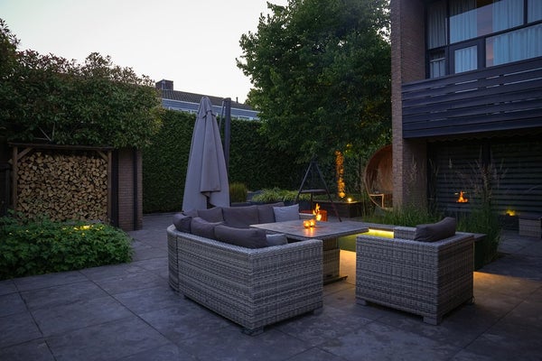 Blikvanger is de houten barrelsauna, perfect geplaatst onder een volwassen boom. Daarnaast is er een buitendouche aanwezig, een tuinverlichtingssysteem (N-light) en een automatische beregeningsinstallatie met grondwaterpuls.