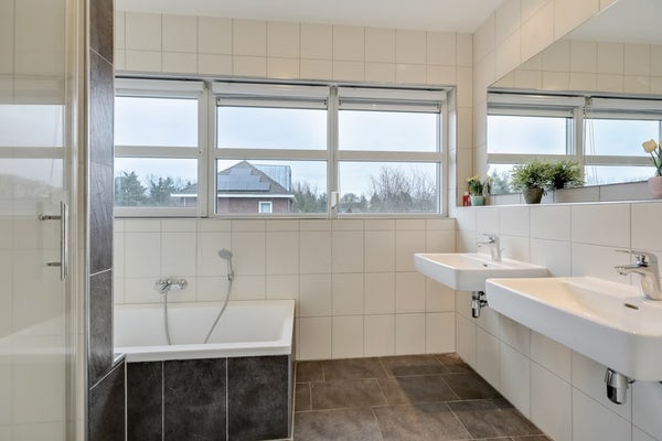 Vanuit de garage loopt u door naar de wellnessruimte, een heerlijke plek voor ultieme ontspanning. Hier vindt u een sauna en een eigen douche. Ook vanuit de achtertuin is de wellnessruimte goed bereikbaar, waardoor u gemakkelijk kunt genieten van een moment van rust, zelfs als u zich buiten bevindt.