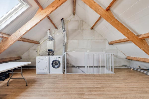 Op deze verdieping vindt u de (tweede) aansluiting voor wasmachine en droger. Hier bevindt zich ook de cv-combiketel. Er is een dakraam aanwezig.