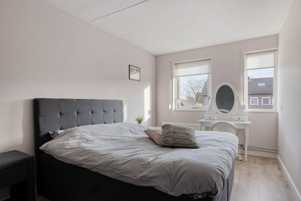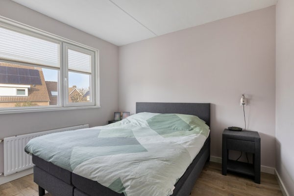 De slaapkamers aan de tuinzijde hebben een afmeting van circa 5,05 x 2,80 en 3,56 x 2,27 meter. De slaapkamer aan de straatzijde is circa 3,07 x 2,80 meter groot. Er ligt een laminaatvloer, de wanden zijn geschilderd en voor de ramen zijn rolluiken geplaatst.