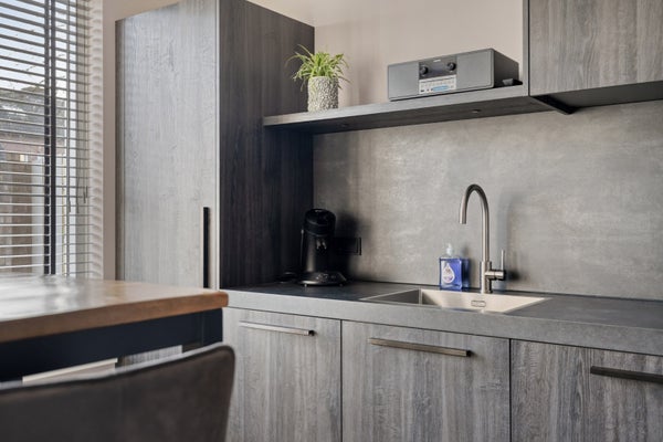 - De keukeninrichting is op maat gemaakt en een heeft een composiet aanrechtblad. De keuken is voorzien van inbouwapparatuur en werd in 2024 nieuw geplaatst.