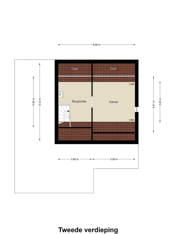 - Aanwezig (153 m², gelegen op het zuidoosten)
